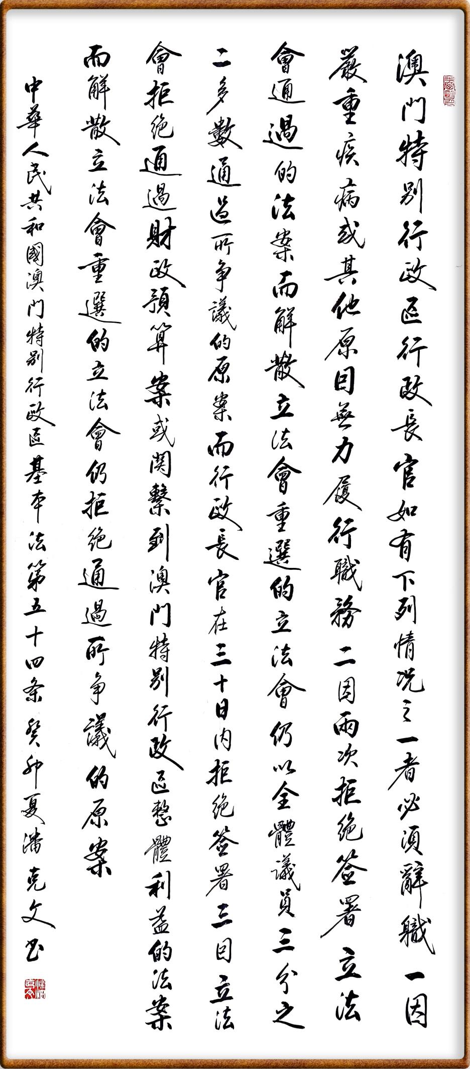 澳門基本法第五十四條 澳門特別行政區(qū)行政長(zhǎng)官如有下列情況之一者必須辭職: