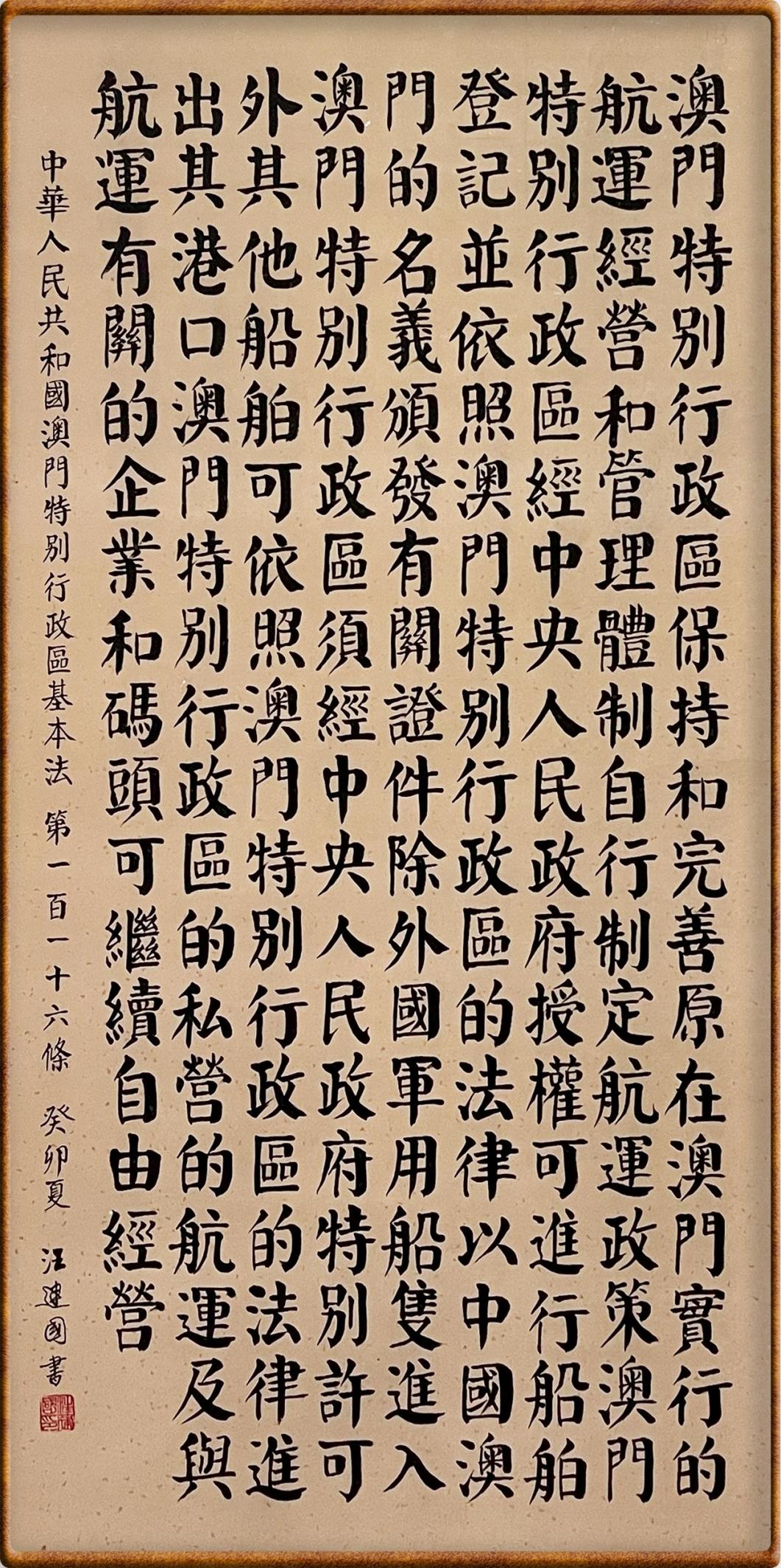 澳門基本法第一百一十六條 澳門特別行政區(qū)保持和完善原在澳門實(shí)行的航運(yùn)經(jīng)營(yíng)和管理體制,自行制定航運(yùn)政策。