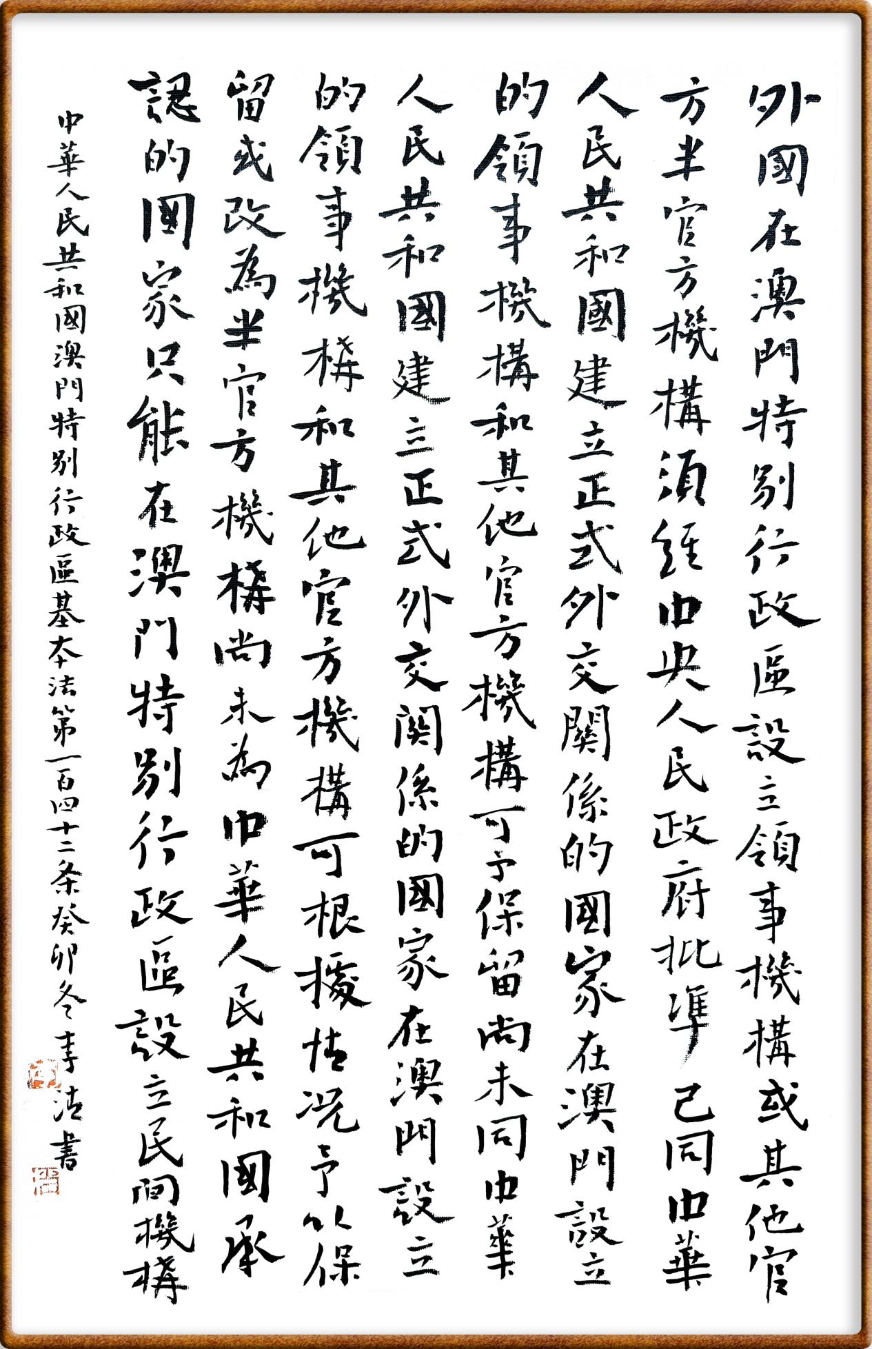 澳門(mén)基本法第一百四十二條 外國(guó)在澳門(mén)特別行政區(qū)設(shè)立領(lǐng)事機(jī)構(gòu)或其他官方、半官方機(jī)構(gòu),須經(jīng)中央人民政府批準(zhǔn)。