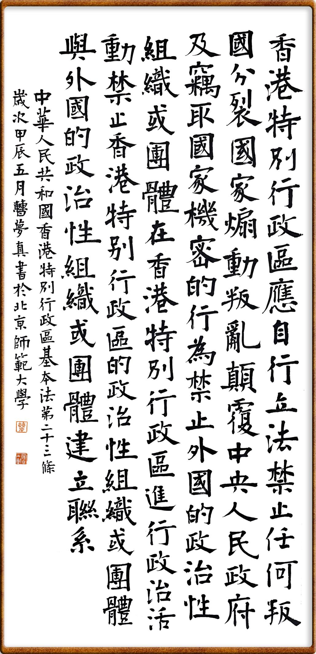 香港基本法第二十三條 香港特別行政區(qū)應(yīng)自行立法禁止任何叛國(guó)、分裂國(guó)家、煽動(dòng)叛亂、顛覆中央人民政府及竊取國(guó)家機(jī)密的行為,禁止外國(guó)的政治性組織或團(tuán)體在香港特別行政區(qū)進(jìn)行政治活動(dòng),禁止香港特別行政區(qū)的政治性組織或團(tuán)體與外國(guó)的政治性組織或團(tuán)體建立聯(lián)系。