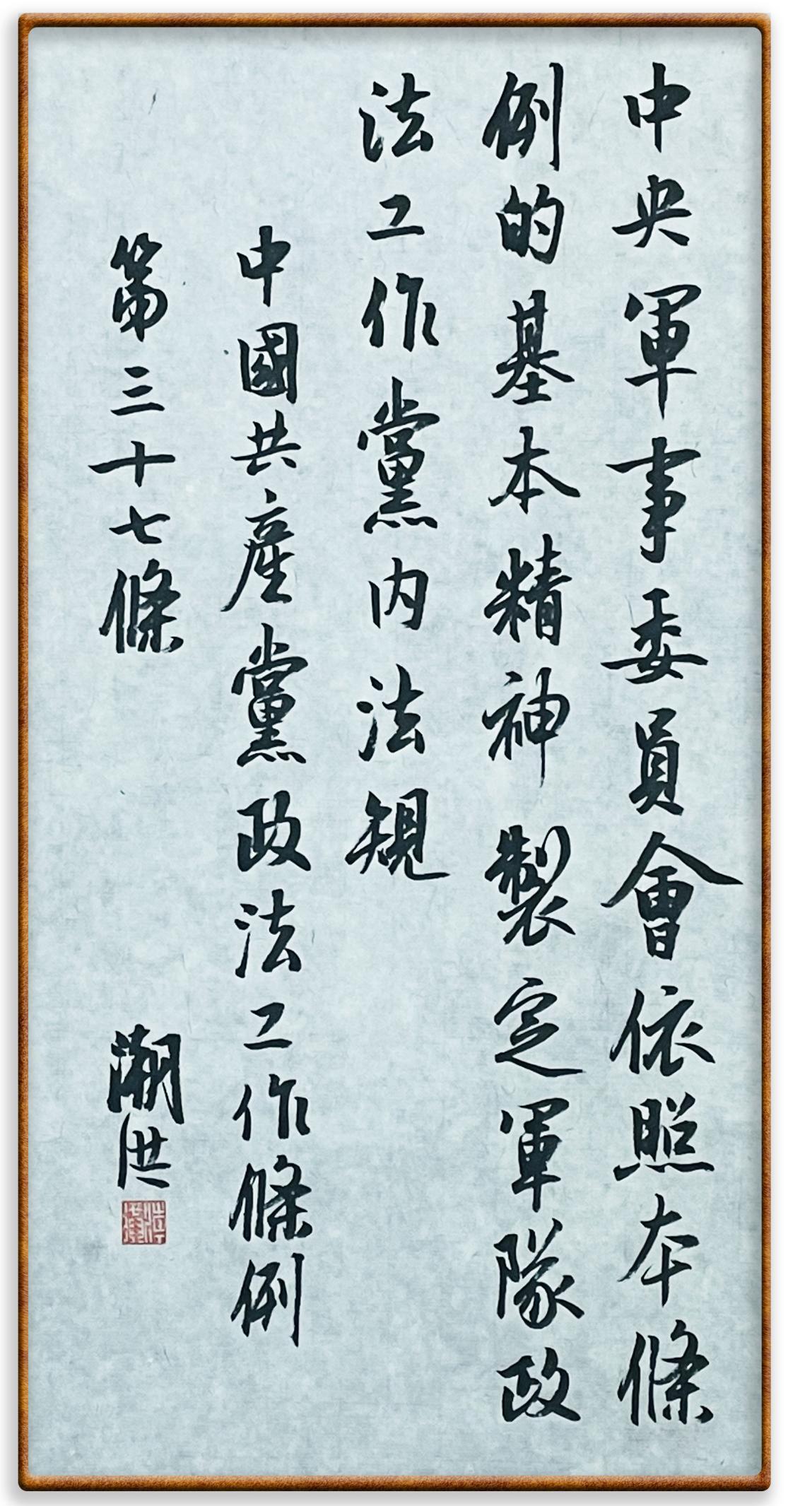 《中國共產(chǎn)黨政法工作條例》對黨領(lǐng)導(dǎo)新時(shí)代政法工作進(jìn)行全面制度擘畫,為黨領(lǐng)導(dǎo)政法工作提供基本遵循,具有重大而深遠(yuǎn)的意義。為學(xué)習(xí)好、宣傳好、貫徹好、實(shí)施好這部黨內(nèi)法規(guī),繼《中華人民共和國民法典》《中華人民共和國憲法》《信訪工作條例》《中華人民共和國澳門特別行政區(qū)基本法》《中華人民共和國香港特別行政區(qū)基本法》等法律法規(guī)之后,“書·法”系列活動(dòng)將筆端對準(zhǔn)《中國共產(chǎn)黨政法工作條例》。