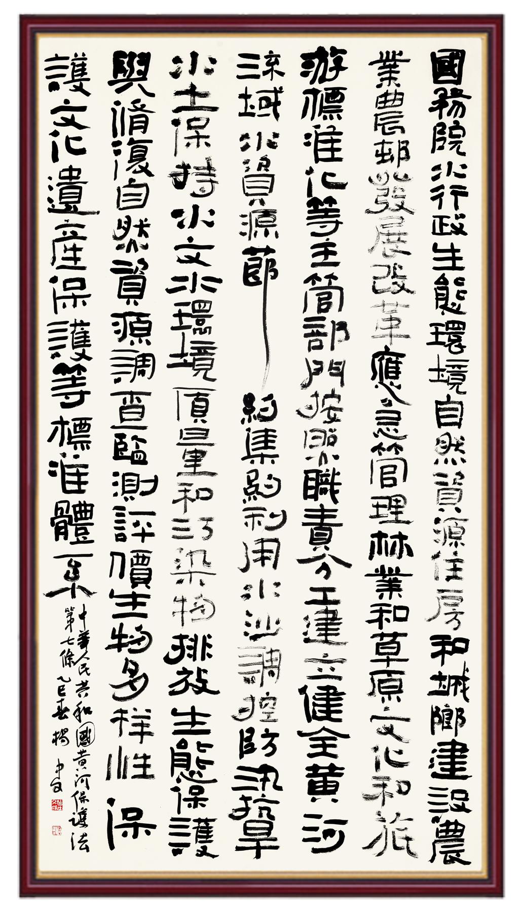 黃河寧,天下平。黃河是中華民族的發(fā)源地和搖籃,保護黃河是事關(guān)中華民族偉大復(fù)興的千秋大計?!吨腥A人民共和國黃河保護法》為推進水資源節(jié)約集約利用、保護傳承弘揚黃河文化、推動黃河流域生態(tài)保護和高質(zhì)量發(fā)展提供了有力法治保障。繼書寫《中華人民共和國民法典》《中華人民共和國憲法》《中華人民共和國澳門特別行政區(qū)基本法》《中華人民共和國香港特別行政區(qū)基本法》《中華人民共和國國旗法》《中華人民共和國國徽法》《中華人民共和國國歌法》《中華人民共和國法官法》等法律法規(guī)之后,法制日報社聯(lián)合沿黃九?。▍^(qū))司法廳、書法家協(xié)會,將筆端對準(zhǔn)《中華人民共和國黃河保護法》。