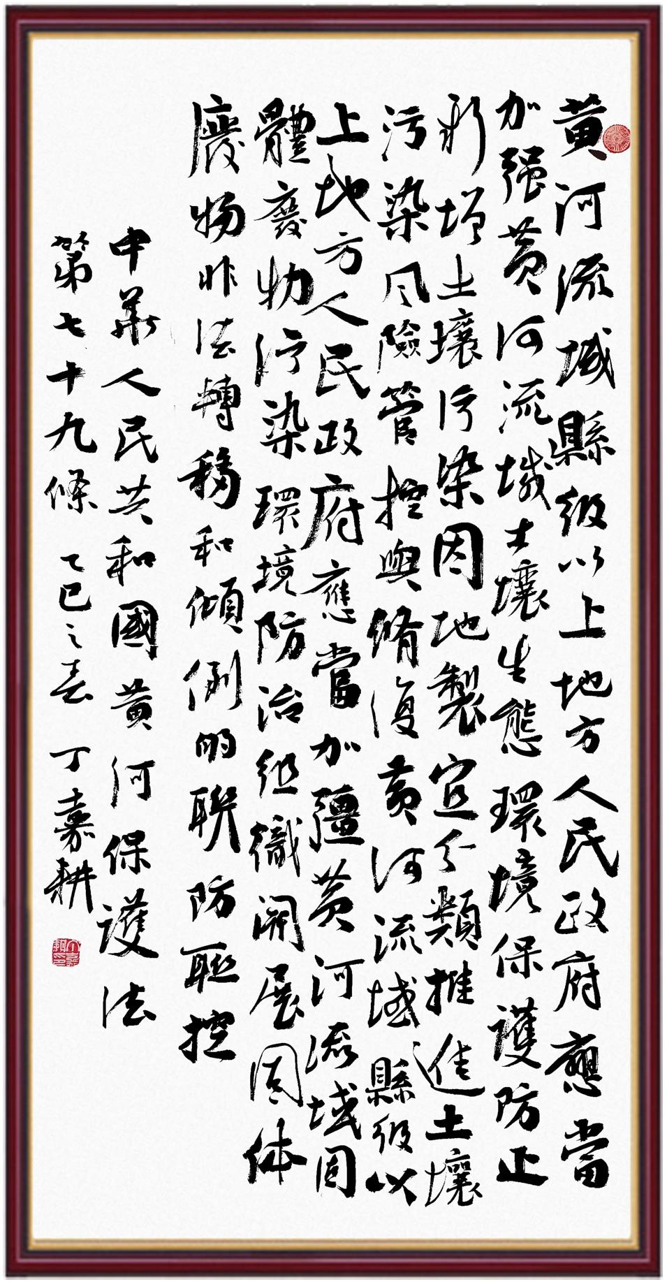 黃河寧,天下平。黃河是中華民族的發(fā)源地和搖籃,保護黃河是事關(guān)中華民族偉大復(fù)興的千秋大計。《中華人民共和國黃河保護法》為推進水資源節(jié)約集約利用、保護傳承弘揚黃河文化、推動黃河流域生態(tài)保護和高質(zhì)量發(fā)展提供了有力法治保障。繼書寫《中華人民共和國民法典》《中華人民共和國憲法》《中華人民共和國澳門特別行政區(qū)基本法》《中華人民共和國香港特別行政區(qū)基本法》《中華人民共和國國旗法》《中華人民共和國國徽法》《中華人民共和國國歌法》《中華人民共和國法官法》等法律法規(guī)之后,法制日報社聯(lián)合沿黃九省(區(qū))司法廳、書法家協(xié)會,將筆端對準《中華人民共和國黃河保護法》。