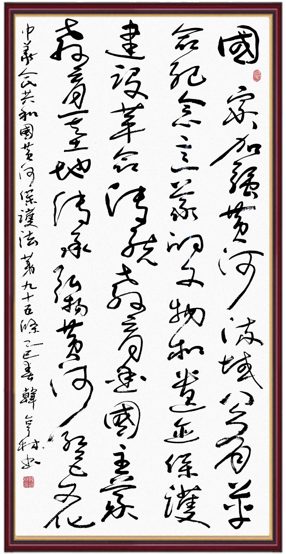 黃河寧,天下平。黃河是中華民族的發(fā)源地和搖籃,保護黃河是事關(guān)中華民族偉大復興的千秋大計?!吨腥A人民共和國黃河保護法》為推進水資源節(jié)約集約利用、保護傳承弘揚黃河文化、推動黃河流域生態(tài)保護和高質(zhì)量發(fā)展提供了有力法治保障。繼書寫《中華人民共和國民法典》《中華人民共和國憲法》《中華人民共和國澳門特別行政區(qū)基本法》《中華人民共和國香港特別行政區(qū)基本法》《中華人民共和國國旗法》《中華人民共和國國徽法》《中華人民共和國國歌法》《中華人民共和國法官法》等法律法規(guī)之后,法制日報社聯(lián)合沿黃九?。▍^(qū))司法廳、書法家協(xié)會,將筆端對準《中華人民共和國黃河保護法》。