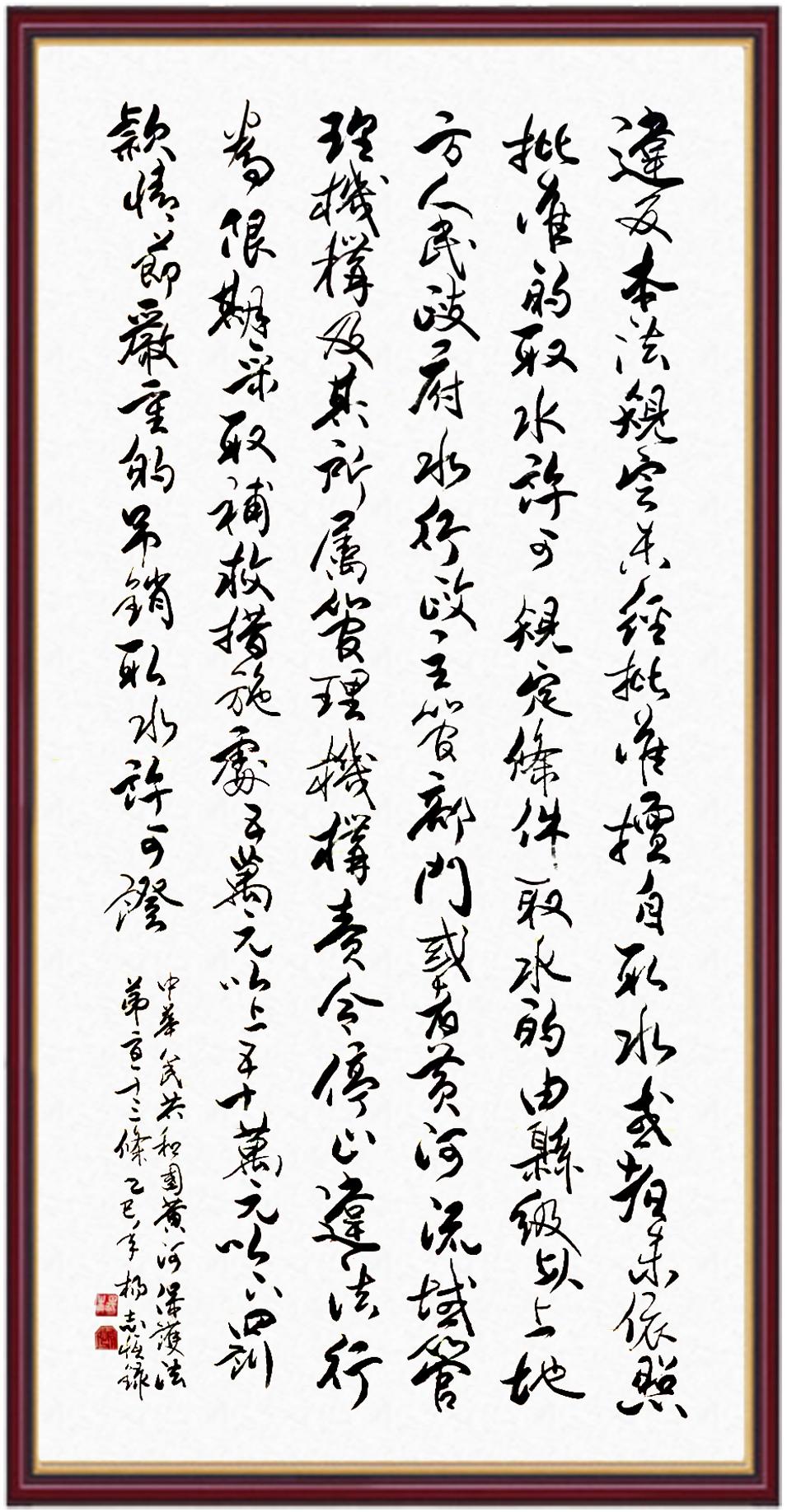 黃河寧,天下平。黃河是中華民族的發(fā)源地和搖籃,保護黃河是事關(guān)中華民族偉大復(fù)興的千秋大計。《中華人民共和國黃河保護法》為推進水資源節(jié)約集約利用、保護傳承弘揚黃河文化、推動黃河流域生態(tài)保護和高質(zhì)量發(fā)展提供了有力法治保障。繼書寫《中華人民共和國民法典》《中華人民共和國憲法》《中華人民共和國澳門特別行政區(qū)基本法》《中華人民共和國香港特別行政區(qū)基本法》《中華人民共和國國旗法》《中華人民共和國國徽法》《中華人民共和國國歌法》《中華人民共和國法官法》等法律法規(guī)之后,法制日報社聯(lián)合沿黃九?。▍^(qū))司法廳、書法家協(xié)會,將筆端對準(zhǔn)《中華人民共和國黃河保護法》。