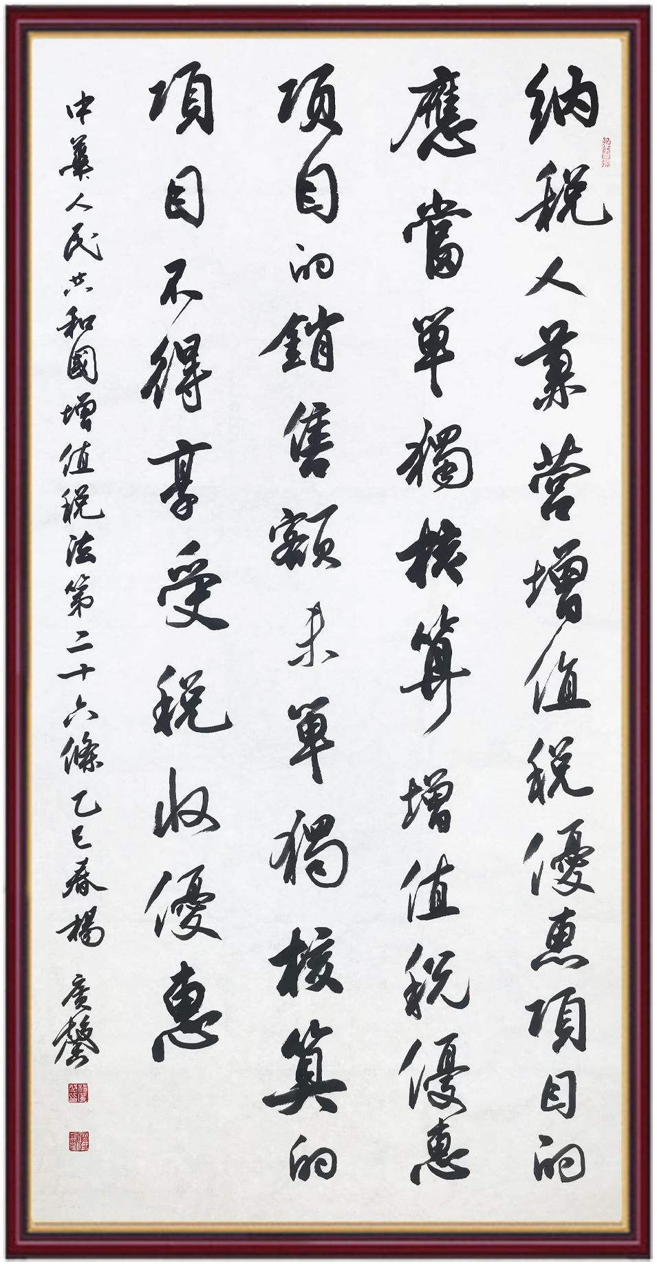 稅收一頭連著國(guó)計(jì),一頭連著民生。全面推進(jìn)依法治稅,是全面依法治國(guó)基本方略在稅收領(lǐng)域的集中體現(xiàn)?!吨腥A人民共和國(guó)增值稅法》將于2026年1月1日起施行,對(duì)全面落實(shí)稅收法定原則、健全有利于高質(zhì)量發(fā)展的增值稅制度、規(guī)范增值稅的征收和繳納、保護(hù)納稅人合法權(quán)益具有重要意義。繼書(shū)寫(xiě)《中華人民共和國(guó)民法典》《中華人民共和國(guó)憲法》《中華人民共和國(guó)國(guó)旗法》《中華人民共和國(guó)國(guó)徽法》《中華人民共和國(guó)國(guó)歌法》《中華人民共和國(guó)法官法》《中華人民共和國(guó)黃河保護(hù)法》等法律法規(guī)之后,法制日?qǐng)?bào)社將筆端對(duì)準(zhǔn)《中華人民共和國(guó)增值稅法》。
