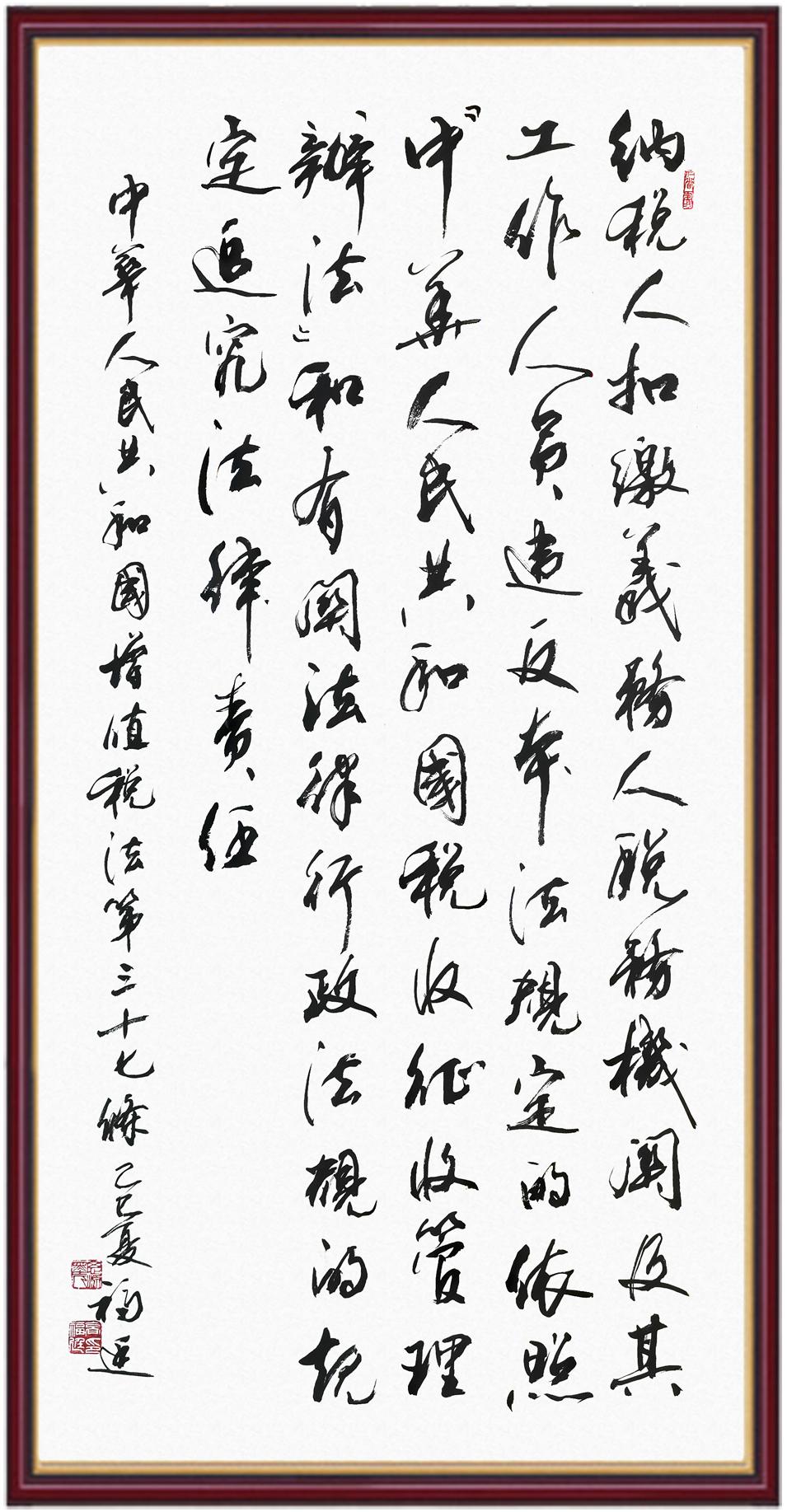 稅收一頭連著國計(jì),一頭連著民生。全面推進(jìn)依法治稅,是全面依法治國基本方略在稅收領(lǐng)域的集中體現(xiàn)。《中華人民共和國增值稅法》將于2026年1月1日起施行,對全面落實(shí)稅收法定原則、健全有利于高質(zhì)量發(fā)展的增值稅制度、規(guī)范增值稅的征收和繳納、保護(hù)納稅人合法權(quán)益具有重要意義。繼書寫《中華人民共和國民法典》《中華人民共和國憲法》《中華人民共和國國旗法》《中華人民共和國國徽法》《中華人民共和國國歌法》《中華人民共和國法官法》《中華人民共和國黃河保護(hù)法》等法律法規(guī)之后,法制日報(bào)社將筆端對準(zhǔn)《中華人民共和國增值稅法》。