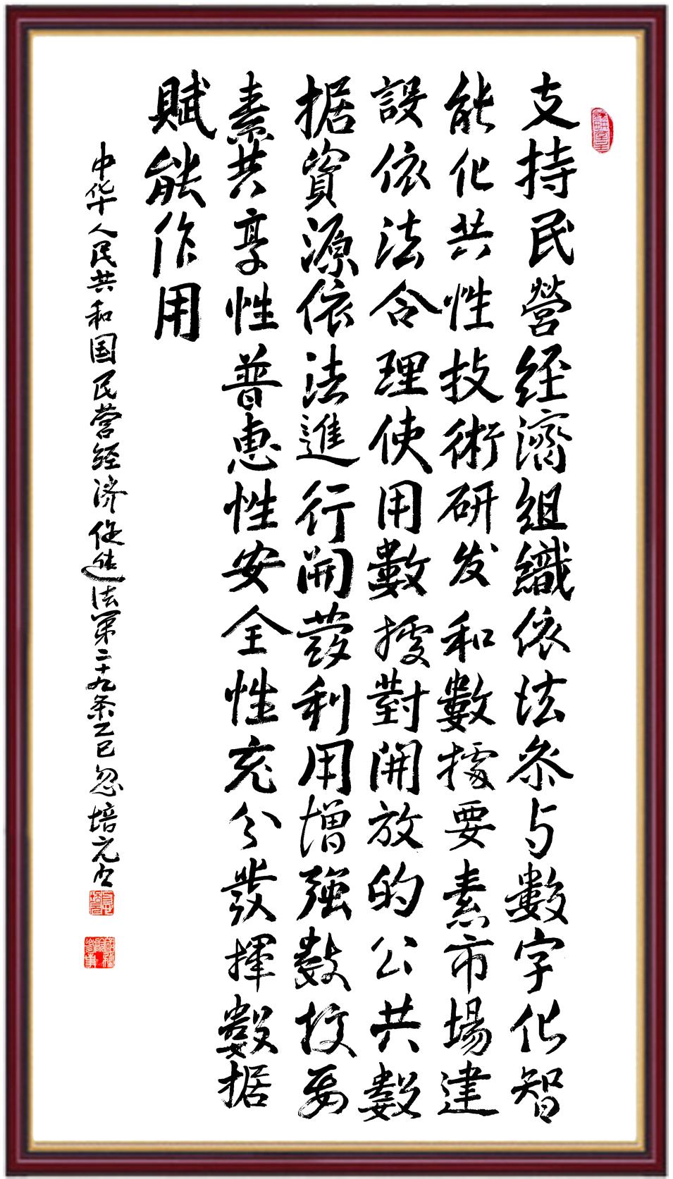 《中華人民共和國(guó)民營(yíng)經(jīng)濟(jì)促進(jìn)法》自今年5月20日起施行。作為我國(guó)首部專門(mén)關(guān)于民營(yíng)經(jīng)濟(jì)發(fā)展的基礎(chǔ)性法律,民營(yíng)經(jīng)濟(jì)促進(jìn)法將支持和保障民營(yíng)經(jīng)濟(jì)發(fā)展的法律制度融入中國(guó)特色社會(huì)主義法律體系,具有重大的法治意義,為促進(jìn)民營(yíng)經(jīng)濟(jì)持續(xù)、健康、高質(zhì)量發(fā)展提供了堅(jiān)實(shí)的法治保障。為更好地學(xué)習(xí)、宣傳、貫徹這部法律,法治日?qǐng)?bào)社聯(lián)合司法部普法與依法治理局,開(kāi)展“‘書(shū)·法’系列活動(dòng)之書(shū)寫(xiě)《中華人民共和國(guó)民營(yíng)經(jīng)濟(jì)促進(jìn)法》”活動(dòng)。