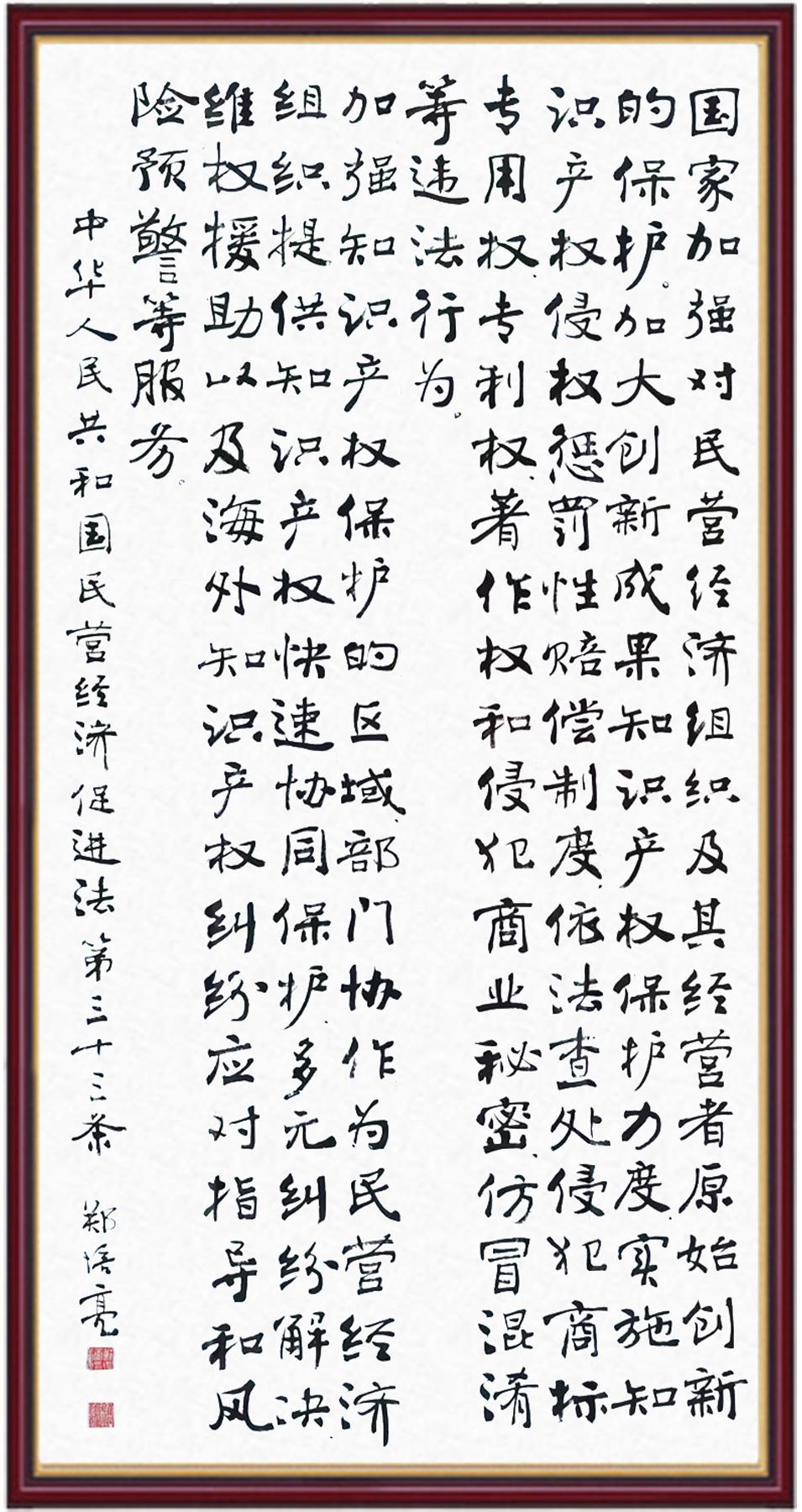 《中華人民共和國民營經(jīng)濟(jì)促進(jìn)法》自今年5月20日起施行。作為我國首部專門關(guān)于民營經(jīng)濟(jì)發(fā)展的基礎(chǔ)性法律,民營經(jīng)濟(jì)促進(jìn)法將支持和保障民營經(jīng)濟(jì)發(fā)展的法律制度融入中國特色社會主義法律體系,具有重大的法治意義,為促進(jìn)民營經(jīng)濟(jì)持續(xù)、健康、高質(zhì)量發(fā)展提供了堅實(shí)的法治保障。為更好地學(xué)習(xí)、宣傳、貫徹這部法律,法治日報社聯(lián)合司法部普法與依法治理局,開展“‘書·法’系列活動之書寫《中華人民共和國民營經(jīng)濟(jì)促進(jìn)法》”活動。