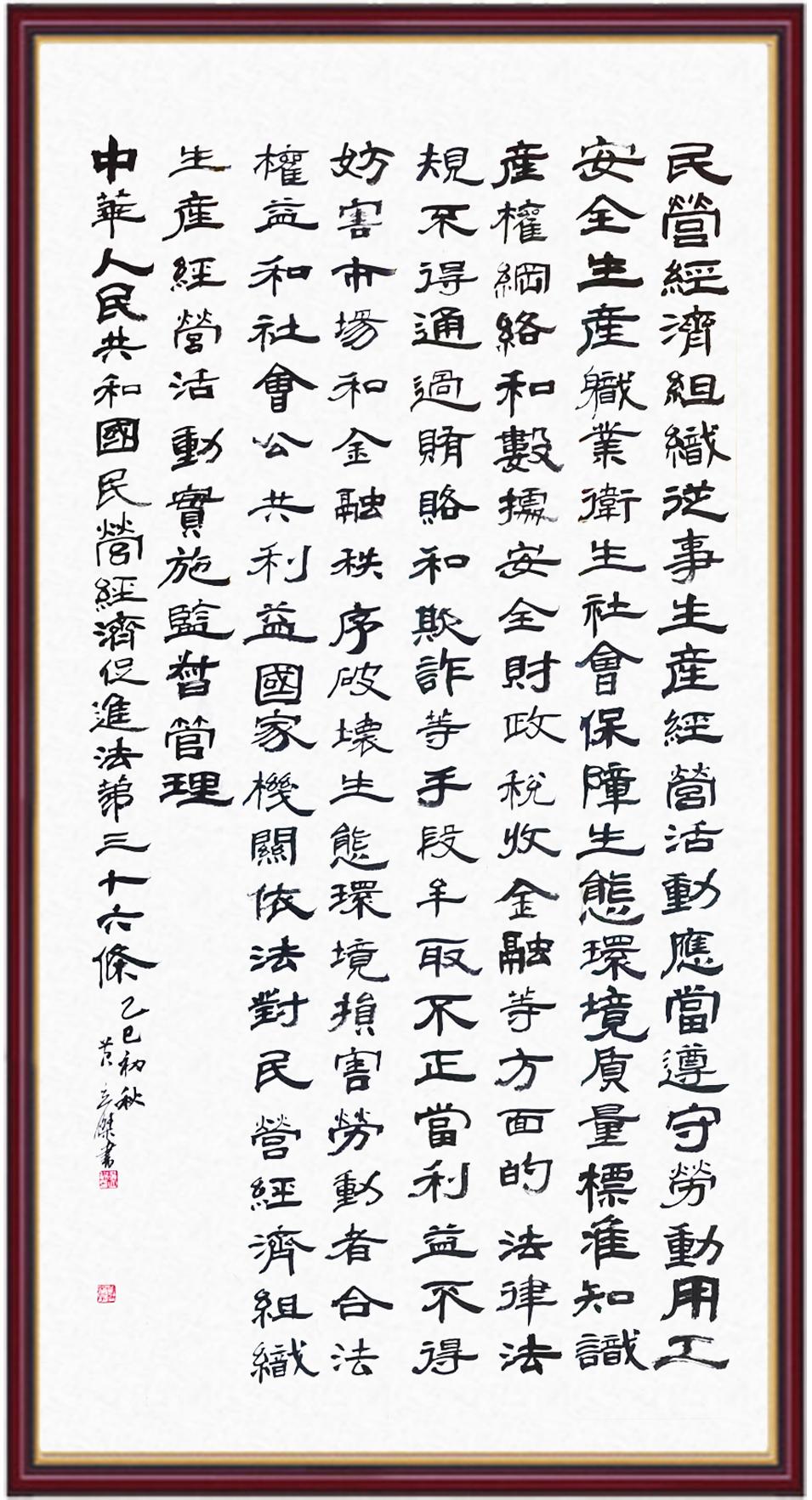 《中華人民共和國民營經(jīng)濟促進法》自今年5月20日起施行。作為我國首部專門關(guān)于民營經(jīng)濟發(fā)展的基礎(chǔ)性法律,民營經(jīng)濟促進法將支持和保障民營經(jīng)濟發(fā)展的法律制度融入中國特色社會主義法律體系,具有重大的法治意義,為促進民營經(jīng)濟持續(xù)、健康、高質(zhì)量發(fā)展提供了堅實的法治保障。為更好地學習、宣傳、貫徹這部法律,法治日報社聯(lián)合司法部普法與依法治理局,開展“‘書·法’系列活動之書寫《中華人民共和國民營經(jīng)濟促進法》”活動。