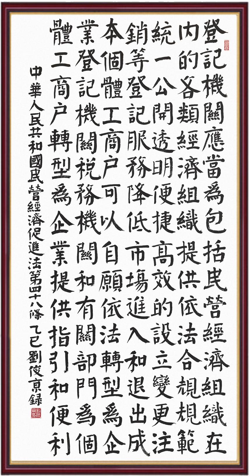 《中華人民共和國(guó)民營(yíng)經(jīng)濟(jì)促進(jìn)法》自今年5月20日起施行。作為我國(guó)首部專門(mén)關(guān)于民營(yíng)經(jīng)濟(jì)發(fā)展的基礎(chǔ)性法律,民營(yíng)經(jīng)濟(jì)促進(jìn)法將支持和保障民營(yíng)經(jīng)濟(jì)發(fā)展的法律制度融入中國(guó)特色社會(huì)主義法律體系,具有重大的法治意義,為促進(jìn)民營(yíng)經(jīng)濟(jì)持續(xù)、健康、高質(zhì)量發(fā)展提供了堅(jiān)實(shí)的法治保障。為更好地學(xué)習(xí)、宣傳、貫徹這部法律,法治日?qǐng)?bào)社聯(lián)合司法部普法與依法治理局,開(kāi)展“‘書(shū)·法’系列活動(dòng)之書(shū)寫(xiě)《中華人民共和國(guó)民營(yíng)經(jīng)濟(jì)促進(jìn)法》”活動(dòng)。