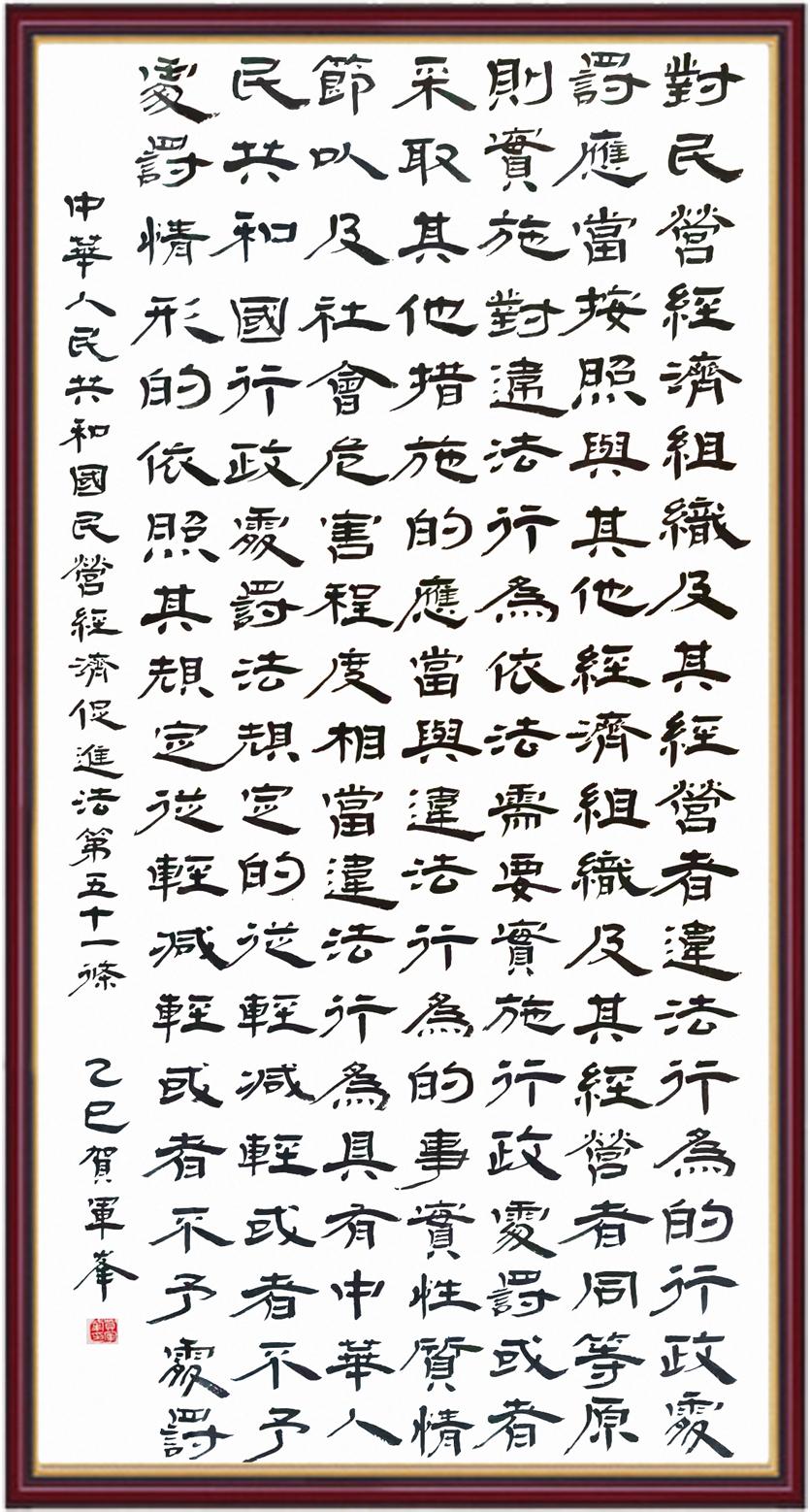 《中華人民共和國民營經(jīng)濟(jì)促進(jìn)法》自今年5月20日起施行。作為我國首部專門關(guān)于民營經(jīng)濟(jì)發(fā)展的基礎(chǔ)性法律,民營經(jīng)濟(jì)促進(jìn)法將支持和保障民營經(jīng)濟(jì)發(fā)展的法律制度融入中國特色社會主義法律體系,具有重大的法治意義,為促進(jìn)民營經(jīng)濟(jì)持續(xù)、健康、高質(zhì)量發(fā)展提供了堅(jiān)實(shí)的法治保障。為更好地學(xué)習(xí)、宣傳、貫徹這部法律,法治日報社聯(lián)合司法部普法與依法治理局,開展“‘書·法’系列活動之書寫《中華人民共和國民營經(jīng)濟(jì)促進(jìn)法》”活動。