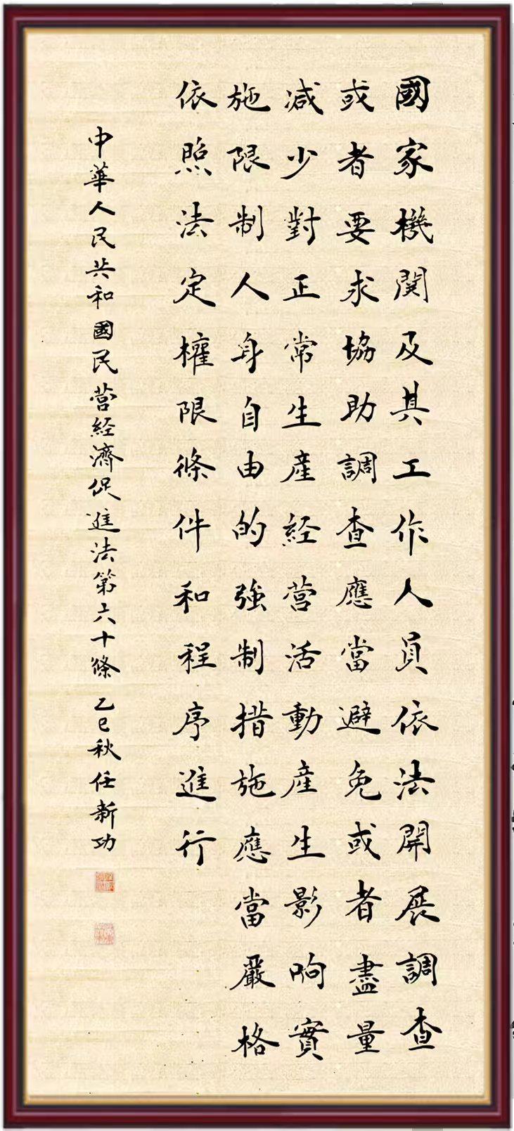 《中華人民共和國(guó)民營(yíng)經(jīng)濟(jì)促進(jìn)法》自今年5月20日起施行。作為我國(guó)首部專門關(guān)于民營(yíng)經(jīng)濟(jì)發(fā)展的基礎(chǔ)性法律,民營(yíng)經(jīng)濟(jì)促進(jìn)法將支持和保障民營(yíng)經(jīng)濟(jì)發(fā)展的法律制度融入中國(guó)特色社會(huì)主義法律體系,具有重大的法治意義,為促進(jìn)民營(yíng)經(jīng)濟(jì)持續(xù)、健康、高質(zhì)量發(fā)展提供了堅(jiān)實(shí)的法治保障。為更好地學(xué)習(xí)、宣傳、貫徹這部法律,法治日?qǐng)?bào)社聯(lián)合司法部普法與依法治理局,開展“‘書·法’系列活動(dòng)之書寫《中華人民共和國(guó)民營(yíng)經(jīng)濟(jì)促進(jìn)法》”活動(dòng)。