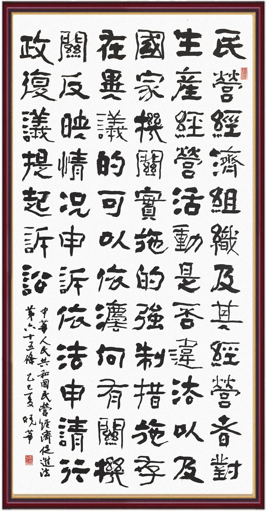 《中華人民共和國民營經(jīng)濟(jì)促進(jìn)法》自今年5月20日起施行。作為我國首部專門關(guān)于民營經(jīng)濟(jì)發(fā)展的基礎(chǔ)性法律,民營經(jīng)濟(jì)促進(jìn)法將支持和保障民營經(jīng)濟(jì)發(fā)展的法律制度融入中國特色社會主義法律體系,具有重大的法治意義,為促進(jìn)民營經(jīng)濟(jì)持續(xù)、健康、高質(zhì)量發(fā)展提供了堅(jiān)實(shí)的法治保障。為更好地學(xué)習(xí)、宣傳、貫徹這部法律,法治日報社聯(lián)合司法部普法與依法治理局,開展“‘書·法’系列活動之書寫《中華人民共和國民營經(jīng)濟(jì)促進(jìn)法》”活動。