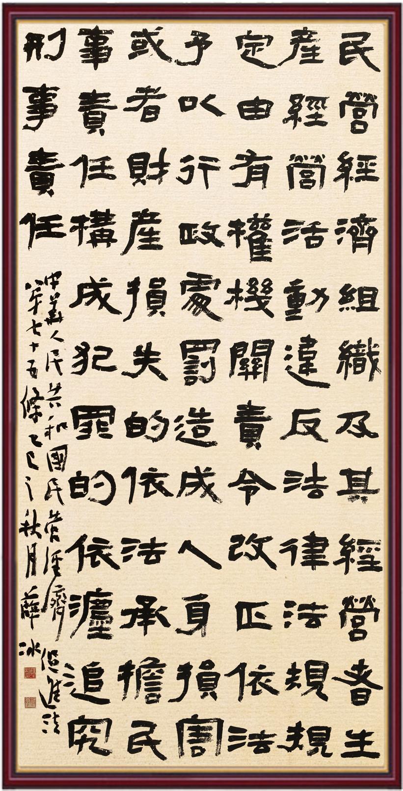 《中華人民共和國(guó)民營(yíng)經(jīng)濟(jì)促進(jìn)法》自今年5月20日起施行。作為我國(guó)首部專門關(guān)于民營(yíng)經(jīng)濟(jì)發(fā)展的基礎(chǔ)性法律,民營(yíng)經(jīng)濟(jì)促進(jìn)法將支持和保障民營(yíng)經(jīng)濟(jì)發(fā)展的法律制度融入中國(guó)特色社會(huì)主義法律體系,具有重大的法治意義,為促進(jìn)民營(yíng)經(jīng)濟(jì)持續(xù)、健康、高質(zhì)量發(fā)展提供了堅(jiān)實(shí)的法治保障。為更好地學(xué)習(xí)、宣傳、貫徹這部法律,法治日?qǐng)?bào)社聯(lián)合司法部普法與依法治理局,開展“‘書·法’系列活動(dòng)之書寫《中華人民共和國(guó)民營(yíng)經(jīng)濟(jì)促進(jìn)法》”活動(dòng)。