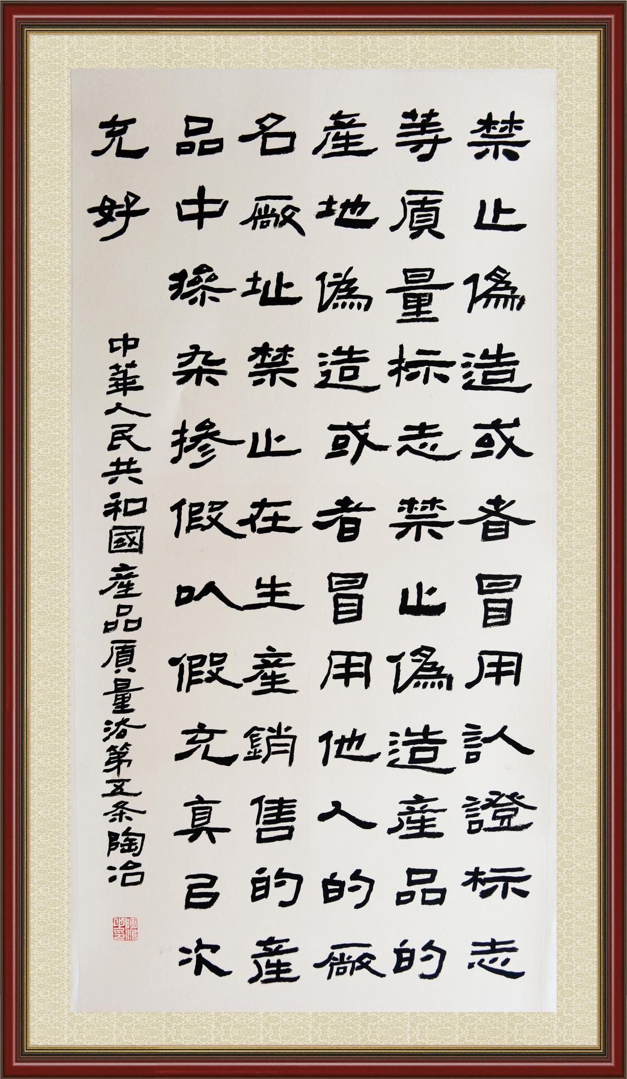 《中華人民共和國產(chǎn)品質(zhì)量法》自1993年9月1日起開始施行,先后進(jìn)行三次修正。作為產(chǎn)品質(zhì)量領(lǐng)域的基本法律,產(chǎn)品質(zhì)量法對規(guī)范產(chǎn)品質(zhì)量管理、維護(hù)消費者合法權(quán)益、促進(jìn)經(jīng)濟(jì)社會發(fā)展具有重要意義。為更好地學(xué)習(xí)、宣傳、貫徹這部法律,在國家市場監(jiān)督管理總局法規(guī)司的支持下,法治日報社開展了“‘書·法’系列活動之書寫《中華人民共和國產(chǎn)品質(zhì)量法》”活動。