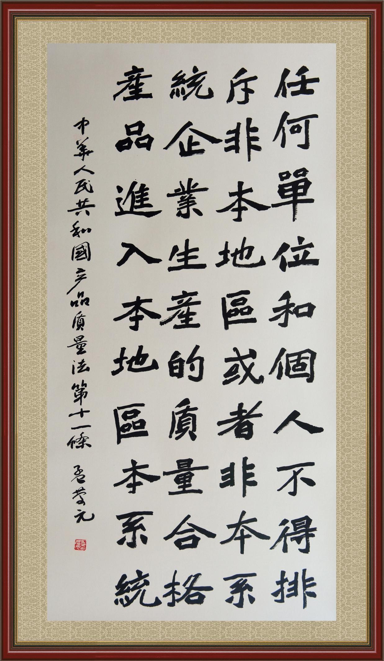 《中華人民共和國產(chǎn)品質量法》自1993年9月1日起開始施行,先后進行三次修正。作為產(chǎn)品質量領域的基本法律,產(chǎn)品質量法對規(guī)范產(chǎn)品質量管理、維護消費者合法權益、促進經(jīng)濟社會發(fā)展具有重要意義。為更好地學習、宣傳、貫徹這部法律,在國家市場監(jiān)督管理總局法規(guī)司的支持下,法治日報社開展了“‘書·法’系列活動之書寫《中華人民共和國產(chǎn)品質量法》”活動。