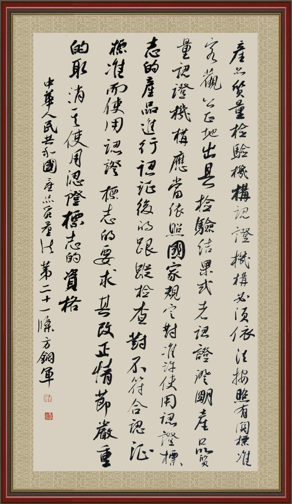 《中華人民共和國(guó)產(chǎn)品質(zhì)量法》自1993年9月1日起開(kāi)始施行,先后進(jìn)行三次修正。作為產(chǎn)品質(zhì)量領(lǐng)域的基本法律,產(chǎn)品質(zhì)量法對(duì)規(guī)范產(chǎn)品質(zhì)量管理、維護(hù)消費(fèi)者合法權(quán)益、促進(jìn)經(jīng)濟(jì)社會(huì)發(fā)展具有重要意義。為更好地學(xué)習(xí)、宣傳、貫徹這部法律,在國(guó)家市場(chǎng)監(jiān)督管理總局法規(guī)司的支持下,法治日?qǐng)?bào)社開(kāi)展了“‘書(shū)·法’系列活動(dòng)之書(shū)寫(xiě)《中華人民共和國(guó)產(chǎn)品質(zhì)量法》”活動(dòng)。