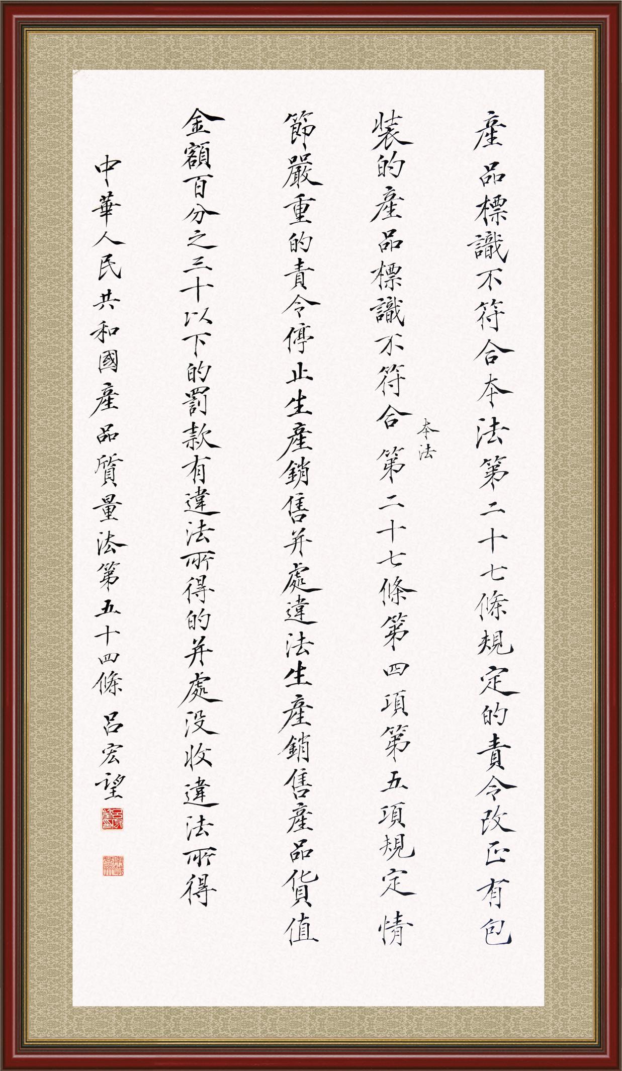 《中華人民共和國產(chǎn)品質(zhì)量法》自1993年9月1日起開始施行,先后進行三次修正。作為產(chǎn)品質(zhì)量領域的基本法律,產(chǎn)品質(zhì)量法對規(guī)范產(chǎn)品質(zhì)量管理、維護消費者合法權(quán)益、促進經(jīng)濟社會發(fā)展具有重要意義。為更好地學習、宣傳、貫徹這部法律,在國家市場監(jiān)督管理總局法規(guī)司的支持下,法治日報社開展了“‘書·法’系列活動之書寫《中華人民共和國產(chǎn)品質(zhì)量法》”活動。