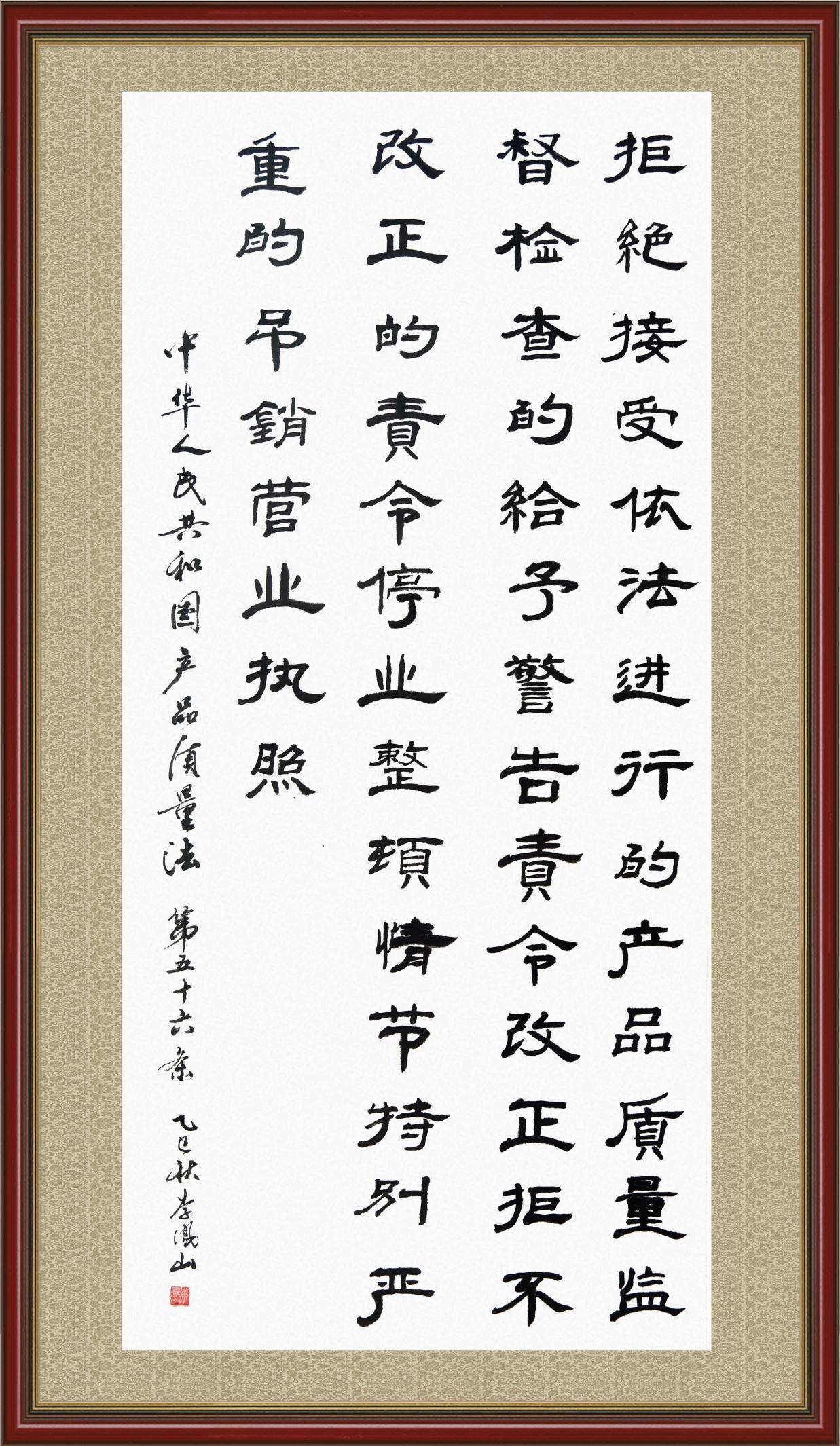 《中華人民共和國產(chǎn)品質(zhì)量法》自1993年9月1日起開始施行,先后進(jìn)行三次修正。作為產(chǎn)品質(zhì)量領(lǐng)域的基本法律,產(chǎn)品質(zhì)量法對規(guī)范產(chǎn)品質(zhì)量管理、維護(hù)消費者合法權(quán)益、促進(jìn)經(jīng)濟(jì)社會發(fā)展具有重要意義。為更好地學(xué)習(xí)、宣傳、貫徹這部法律,在國家市場監(jiān)督管理總局法規(guī)司的支持下,法治日報社開展了“‘書·法’系列活動之書寫《中華人民共和國產(chǎn)品質(zhì)量法》”活動。