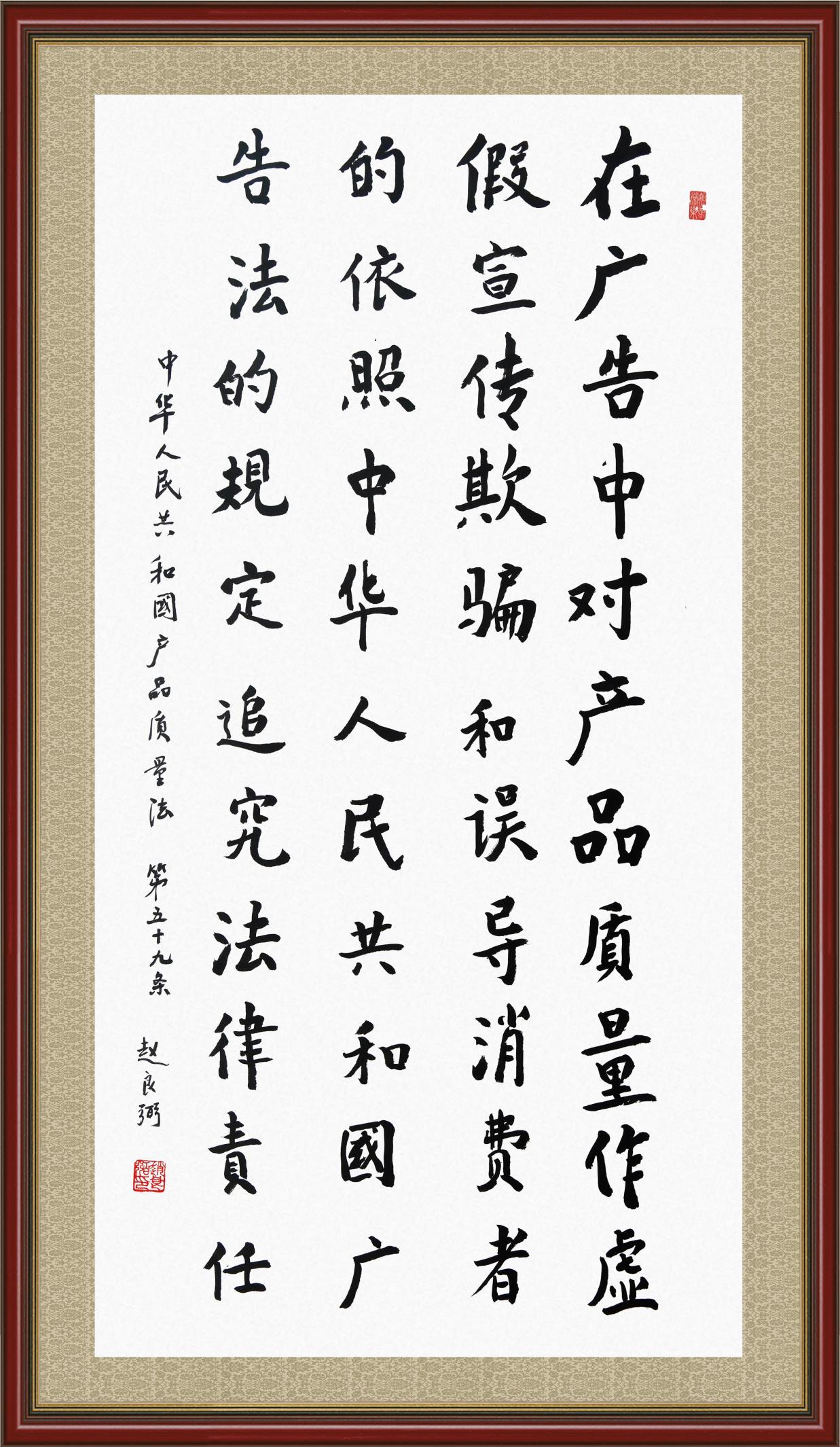 《中華人民共和國(guó)產(chǎn)品質(zhì)量法》自1993年9月1日起開(kāi)始施行,先后進(jìn)行三次修正。作為產(chǎn)品質(zhì)量領(lǐng)域的基本法律,產(chǎn)品質(zhì)量法對(duì)規(guī)范產(chǎn)品質(zhì)量管理、維護(hù)消費(fèi)者合法權(quán)益、促進(jìn)經(jīng)濟(jì)社會(huì)發(fā)展具有重要意義。為更好地學(xué)習(xí)、宣傳、貫徹這部法律,在國(guó)家市場(chǎng)監(jiān)督管理總局法規(guī)司的支持下,法治日?qǐng)?bào)社開(kāi)展了“‘書(shū)·法’系列活動(dòng)之書(shū)寫(xiě)《中華人民共和國(guó)產(chǎn)品質(zhì)量法》”活動(dòng)。