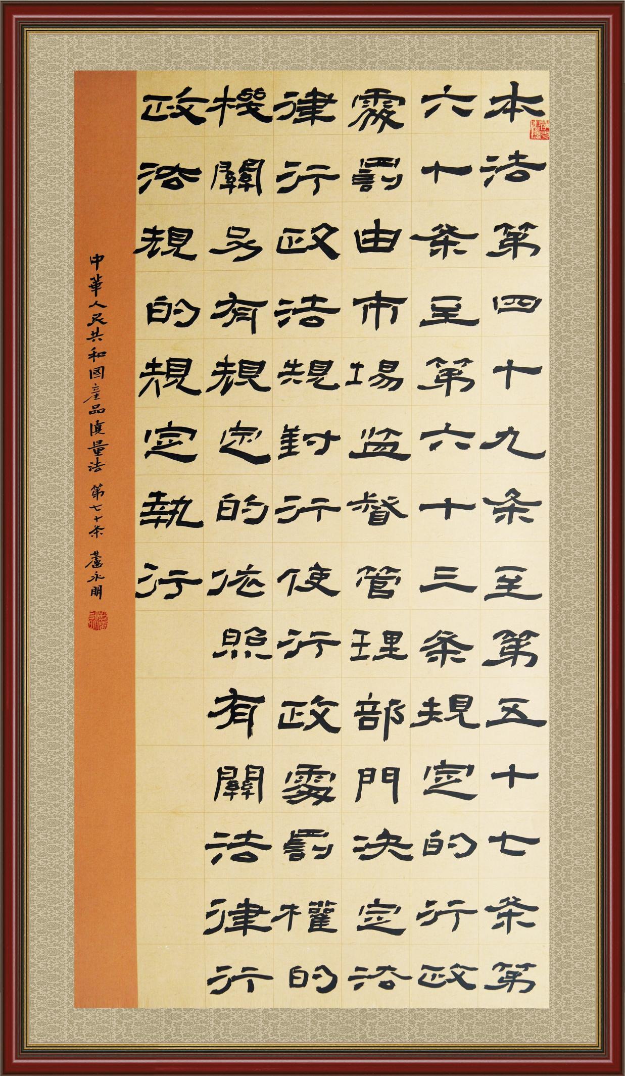 《中華人民共和國(guó)產(chǎn)品質(zhì)量法》自1993年9月1日起開(kāi)始施行,先后進(jìn)行三次修正。作為產(chǎn)品質(zhì)量領(lǐng)域的基本法律,產(chǎn)品質(zhì)量法對(duì)規(guī)范產(chǎn)品質(zhì)量管理、維護(hù)消費(fèi)者合法權(quán)益、促進(jìn)經(jīng)濟(jì)社會(huì)發(fā)展具有重要意義。為更好地學(xué)習(xí)、宣傳、貫徹這部法律,在國(guó)家市場(chǎng)監(jiān)督管理總局法規(guī)司的支持下,法治日?qǐng)?bào)社開(kāi)展了“‘書(shū)·法’系列活動(dòng)之書(shū)寫(xiě)《中華人民共和國(guó)產(chǎn)品質(zhì)量法》”活動(dòng)。