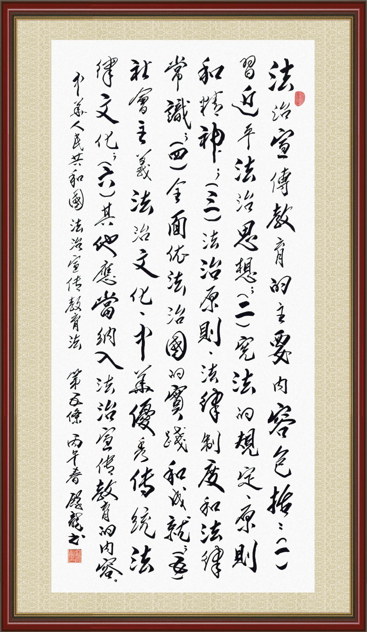 2020年7月11日,由法治日報社主辦的“書·法”系列活動正式啟動,先后書寫《中華人民共和國民法典》《中華人民共和國憲法》《中華人民共和國民營經(jīng)濟(jì)促進(jìn)法》等21部法律法規(guī)。