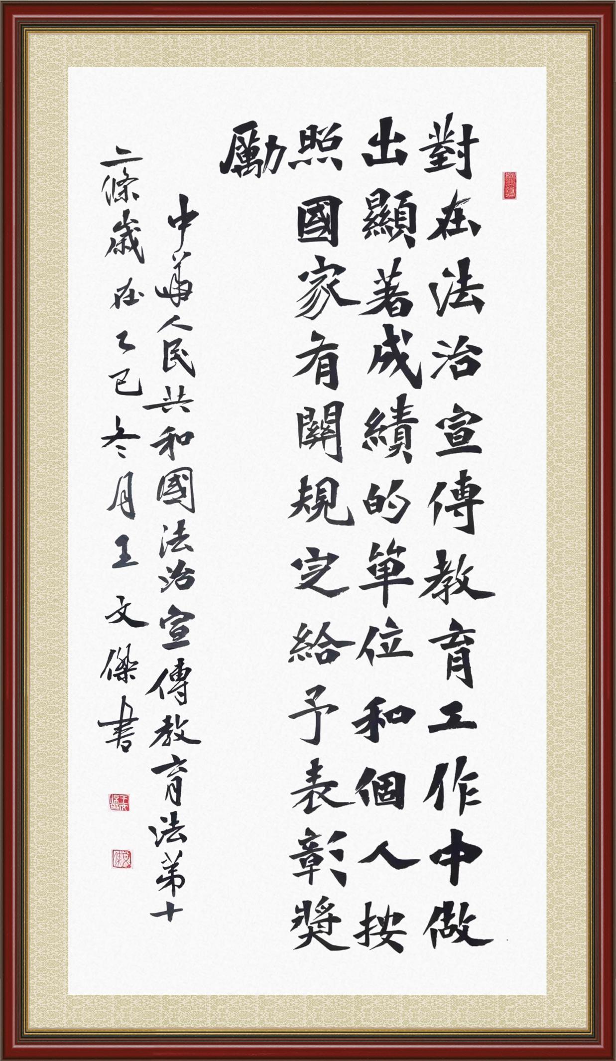 《中華人民共和國法治宣傳教育法》自2025年11月1日起開始施行。法治宣傳教育是全面依法治國的長期基礎(chǔ)性工作。法治宣傳教育法對提升全民法治素養(yǎng)和社會治理法治化水平、推動建設(shè)更高水平的社會主義法治國家具有重要意義。為更好地學習、宣傳、貫徹這部法律,法治日報社聯(lián)合司法部普法與依法治理局,開展了“‘書·法’系列活動之書寫《中華人民共和國法治宣傳教育法》”活動。