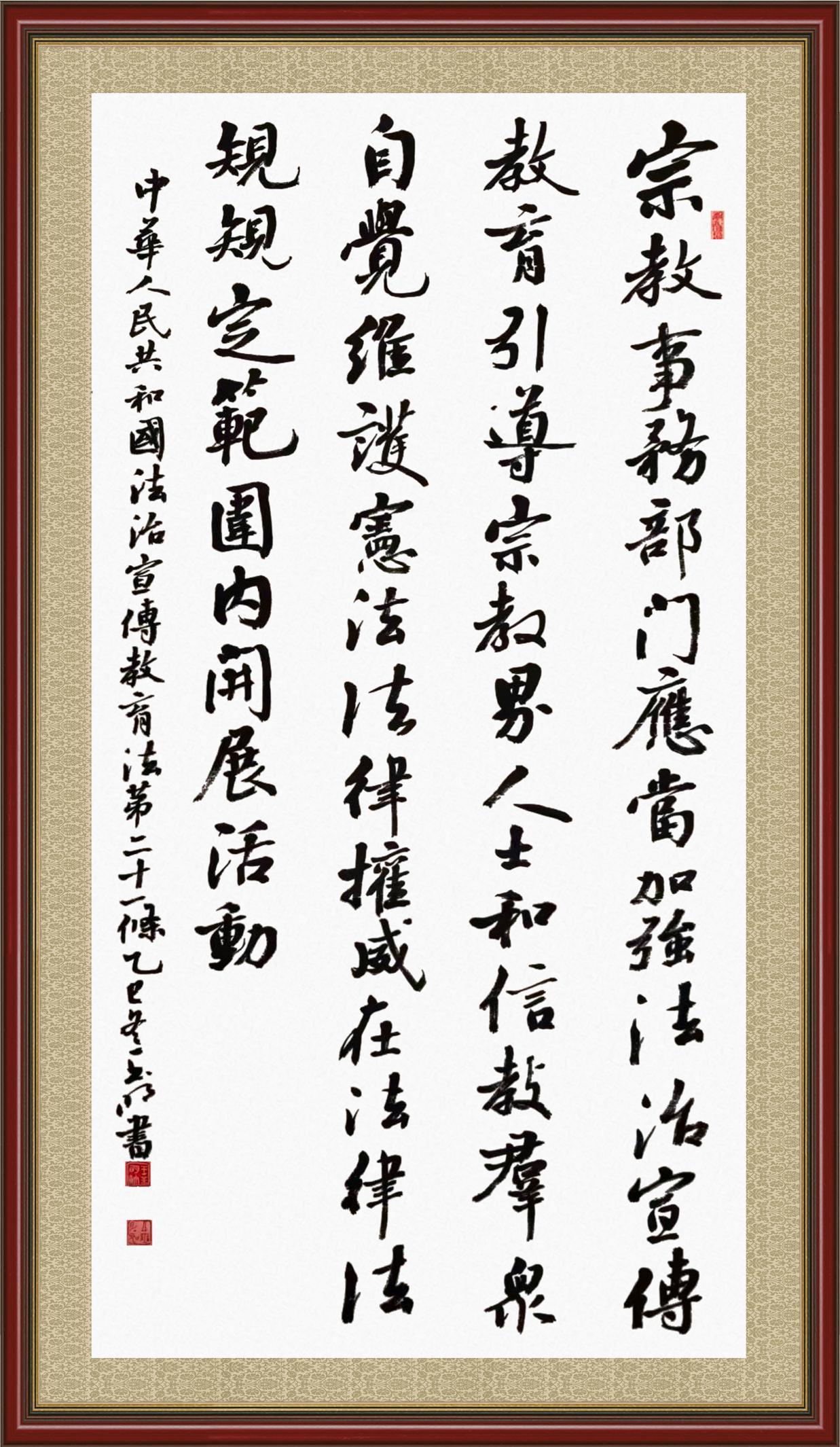 2020年7月11日,由法治日報社主辦的“書·法”系列活動正式啟動,先后書寫《中華人民共和國民法典》《中華人民共和國憲法》《中華人民共和國民營經濟促進法》等21部法律法規(guī)。