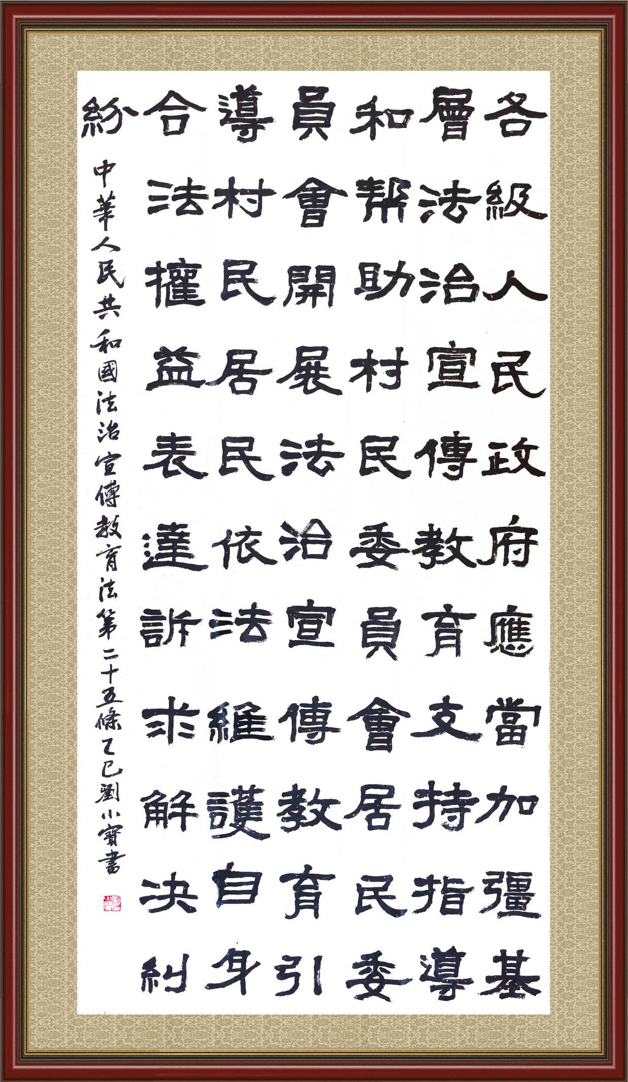 《中華人民共和國法治宣傳教育法》自2025年11月1日起開始施行。法治宣傳教育是全面依法治國的長期基礎性工作。法治宣傳教育法對提升全民法治素養(yǎng)和社會治理法治化水平、推動建設更高水平的社會主義法治國家具有重要意義。為更好地學習、宣傳、貫徹這部法律,法治日報社聯(lián)合司法部普法與依法治理局,開展了“‘書·法’系列活動之書寫《中華人民共和國法治宣傳教育法》”活動。