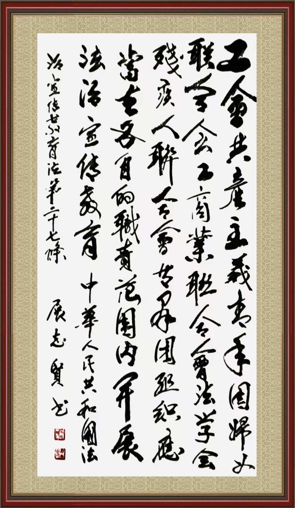 2020年7月11日,由法治日報(bào)社主辦的“書·法”系列活動(dòng)正式啟動(dòng),先后書寫《中華人民共和國民法典》《中華人民共和國憲法》《中華人民共和國民營經(jīng)濟(jì)促進(jìn)法》等21部法律法規(guī)。
