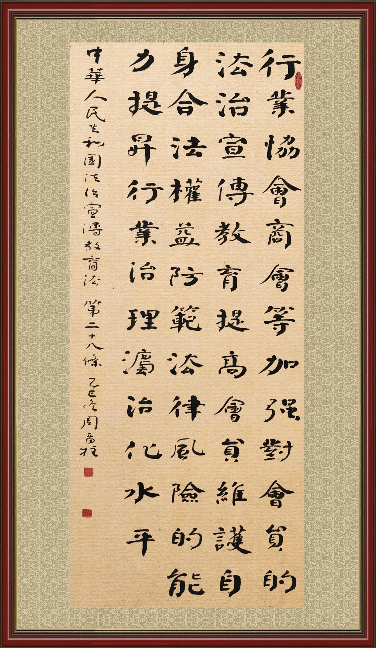 2020年7月11日,由法治日報社主辦的“書·法”系列活動正式啟動,先后書寫《中華人民共和國民法典》《中華人民共和國憲法》《中華人民共和國民營經(jīng)濟促進法》等21部法律法規(guī)。