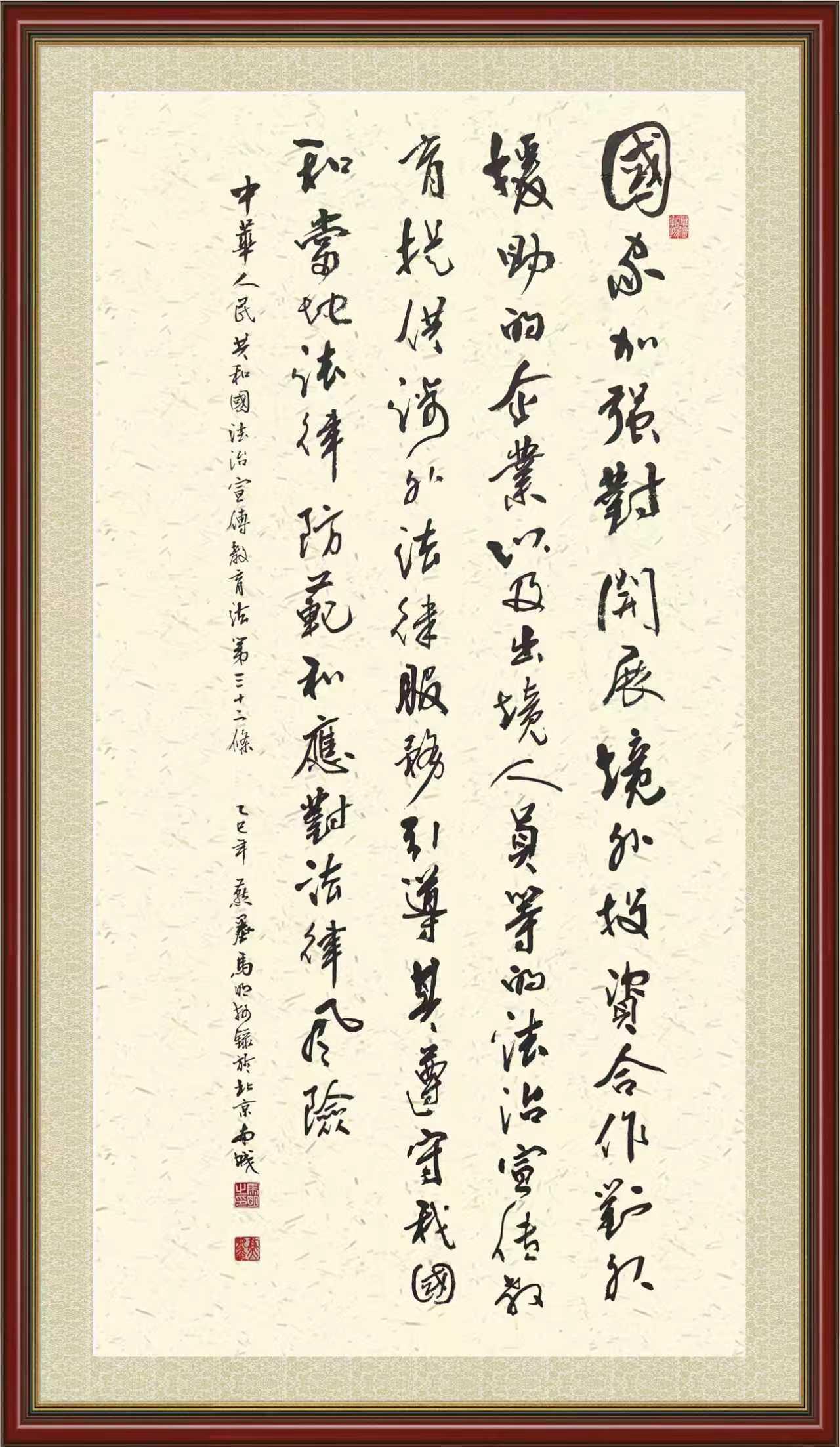 2020年7月11日,由法治日報社主辦的“書·法”系列活動正式啟動,先后書寫《中華人民共和國民法典》《中華人民共和國憲法》《中華人民共和國民營經(jīng)濟(jì)促進(jìn)法》等21部法律法規(guī)。