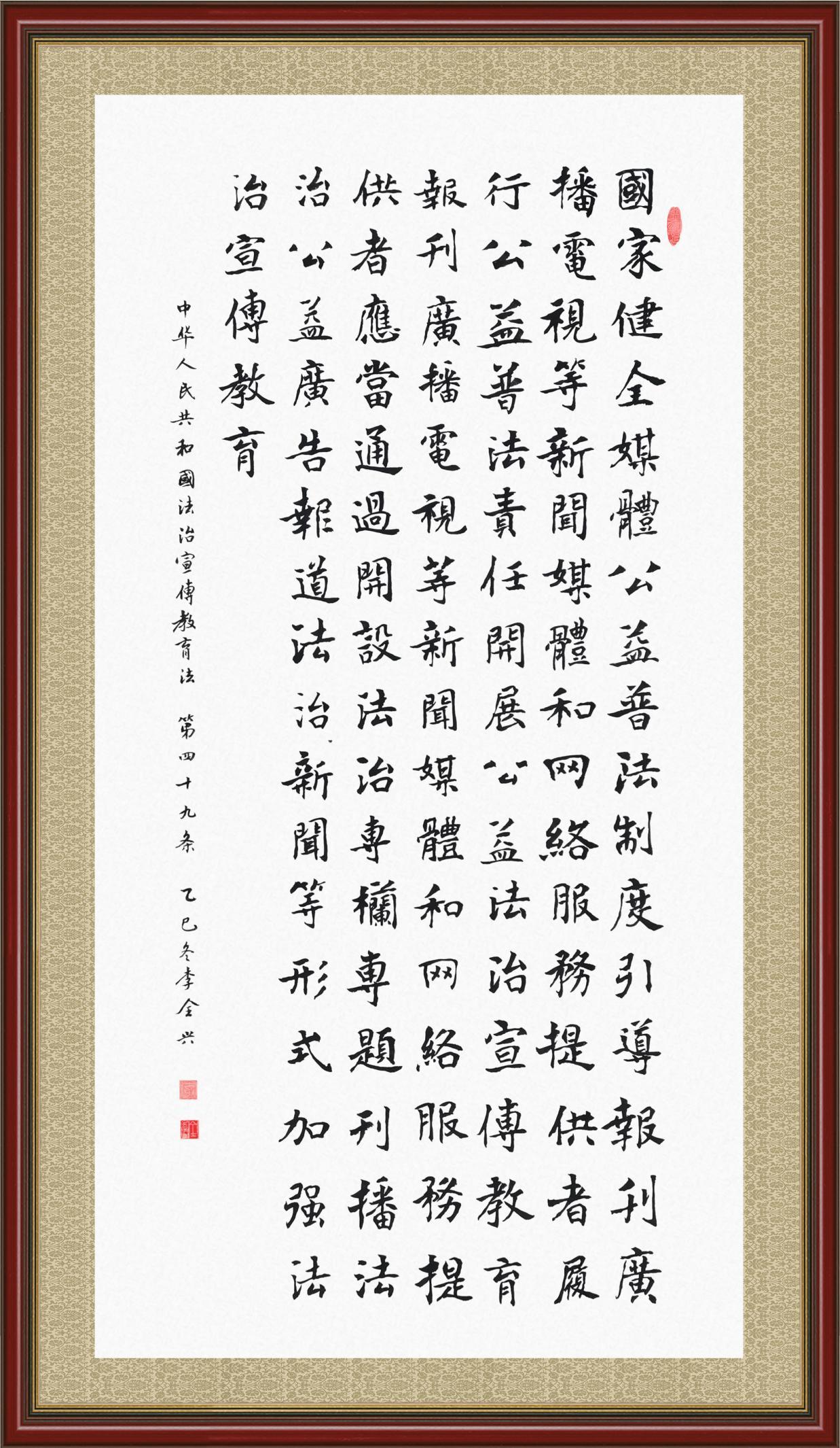 《中華人民共和國法治宣傳教育法》自2025年11月1日起開始施行。法治宣傳教育是全面依法治國的長期基礎(chǔ)性工作。法治宣傳教育法對提升全民法治素養(yǎng)和社會治理法治化水平、推動建設(shè)更高水平的社會主義法治國家具有重要意義。為更好地學(xué)習(xí)、宣傳、貫徹這部法律,法治日報(bào)社聯(lián)合司法部普法與依法治理局,開展了“‘書·法’系列活動之書寫《中華人民共和國法治宣傳教育法》”活動。