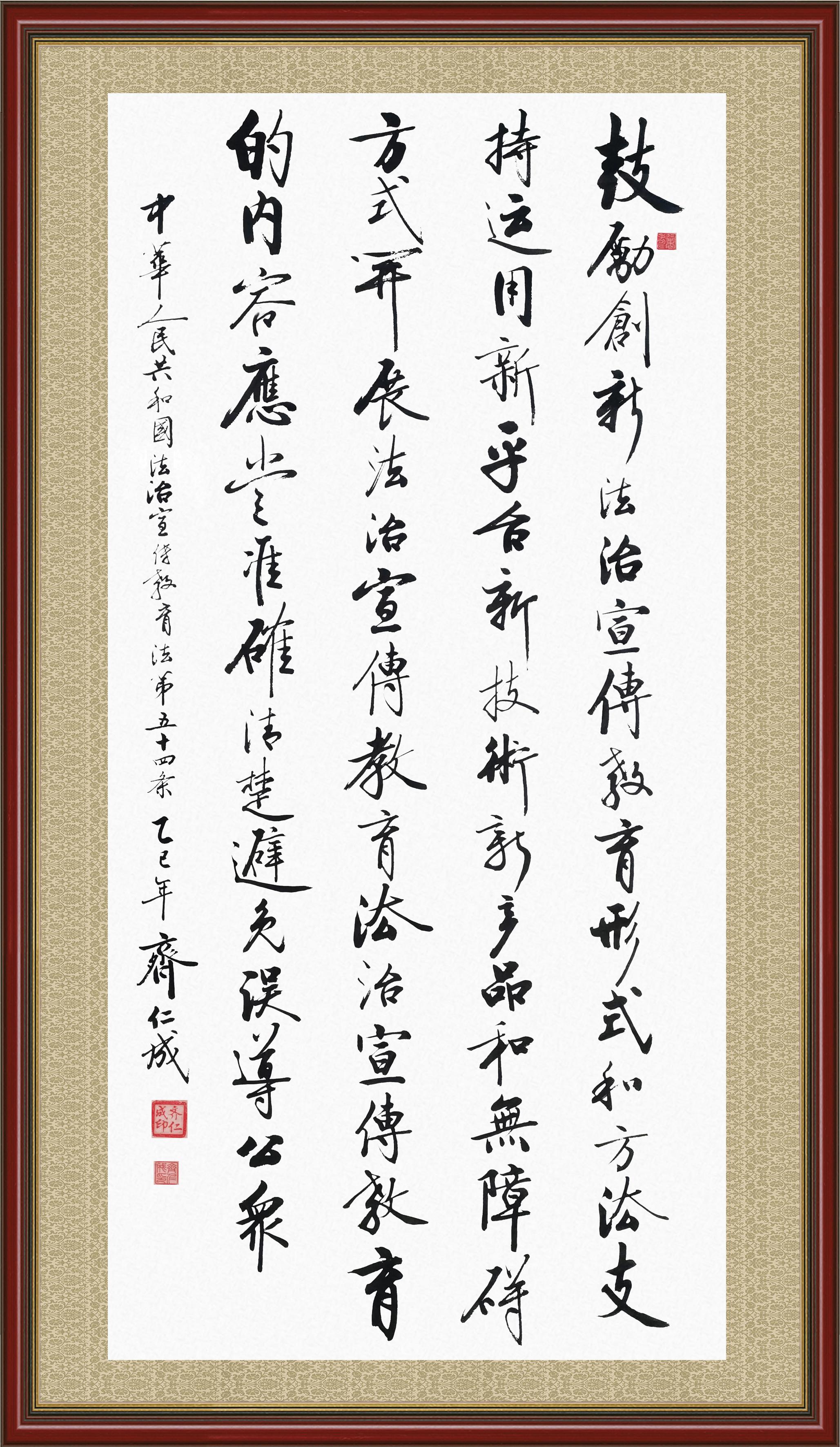 《中華人民共和國(guó)法治宣傳教育法》自2025年11月1日起開(kāi)始施行。法治宣傳教育是全面依法治國(guó)的長(zhǎng)期基礎(chǔ)性工作。法治宣傳教育法對(duì)提升全民法治素養(yǎng)和社會(huì)治理法治化水平、推動(dòng)建設(shè)更高水平的社會(huì)主義法治國(guó)家具有重要意義。為更好地學(xué)習(xí)、宣傳、貫徹這部法律,法治日?qǐng)?bào)社聯(lián)合司法部普法與依法治理局,開(kāi)展了“‘書(shū)·法’系列活動(dòng)之書(shū)寫(xiě)《中華人民共和國(guó)法治宣傳教育法》”活動(dòng)。
