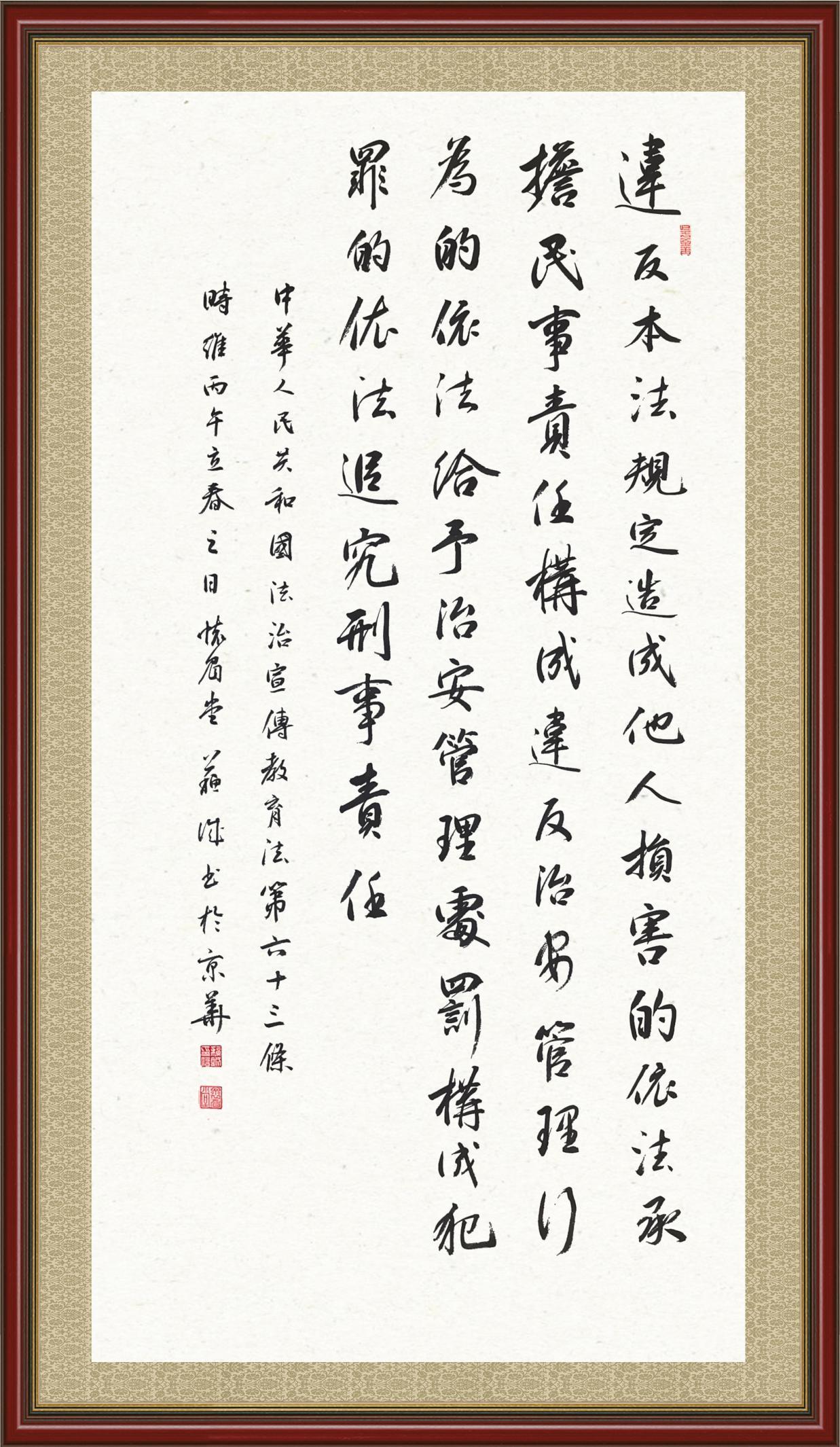 《中華人民共和國法治宣傳教育法》自2025年11月1日起開始施行。法治宣傳教育是全面依法治國的長期基礎(chǔ)性工作。法治宣傳教育法對提升全民法治素養(yǎng)和社會治理法治化水平、推動建設(shè)更高水平的社會主義法治國家具有重要意義。為更好地學(xué)習(xí)、宣傳、貫徹這部法律,法治日報(bào)社聯(lián)合司法部普法與依法治理局,開展了“‘書·法’系列活動之書寫《中華人民共和國法治宣傳教育法》”活動。