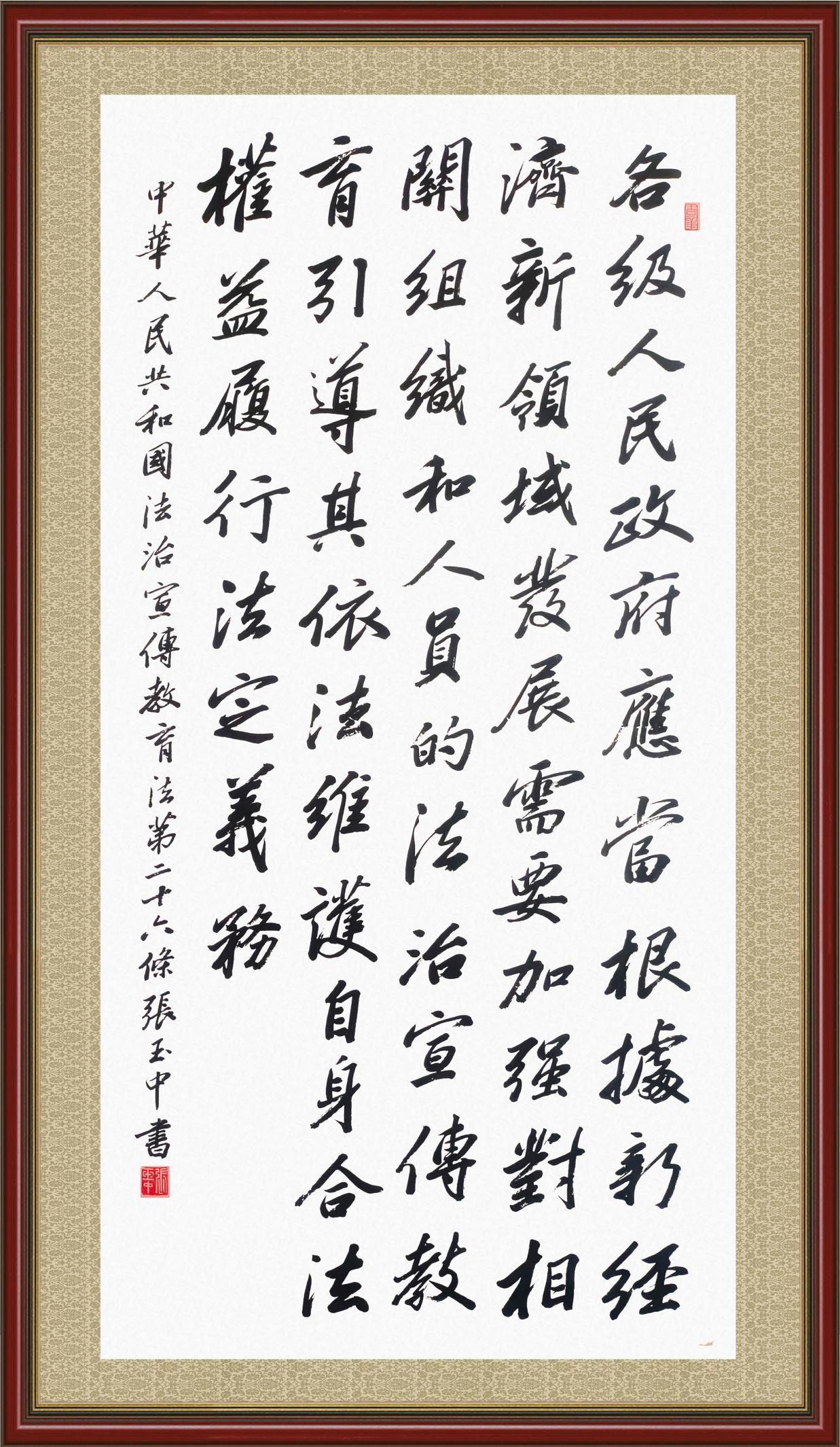2020年7月11日,由法治日?qǐng)?bào)社主辦的“書·法”系列活動(dòng)正式啟動(dòng),先后書寫《中華人民共和國民法典》《中華人民共和國憲法》《中華人民共和國民營經(jīng)濟(jì)促進(jìn)法》等21部法律法規(guī)。