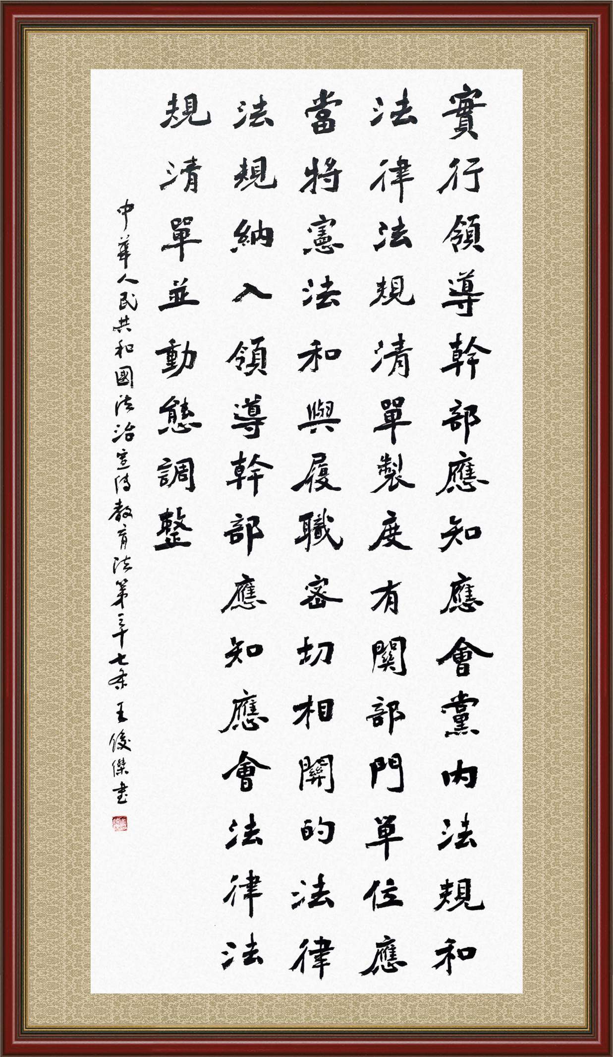 2020年7月11日,由法治日報(bào)社主辦的“書·法”系列活動(dòng)正式啟動(dòng),先后書寫《中華人民共和國民法典》《中華人民共和國憲法》《中華人民共和國民營經(jīng)濟(jì)促進(jìn)法》等21部法律法規(guī)。
