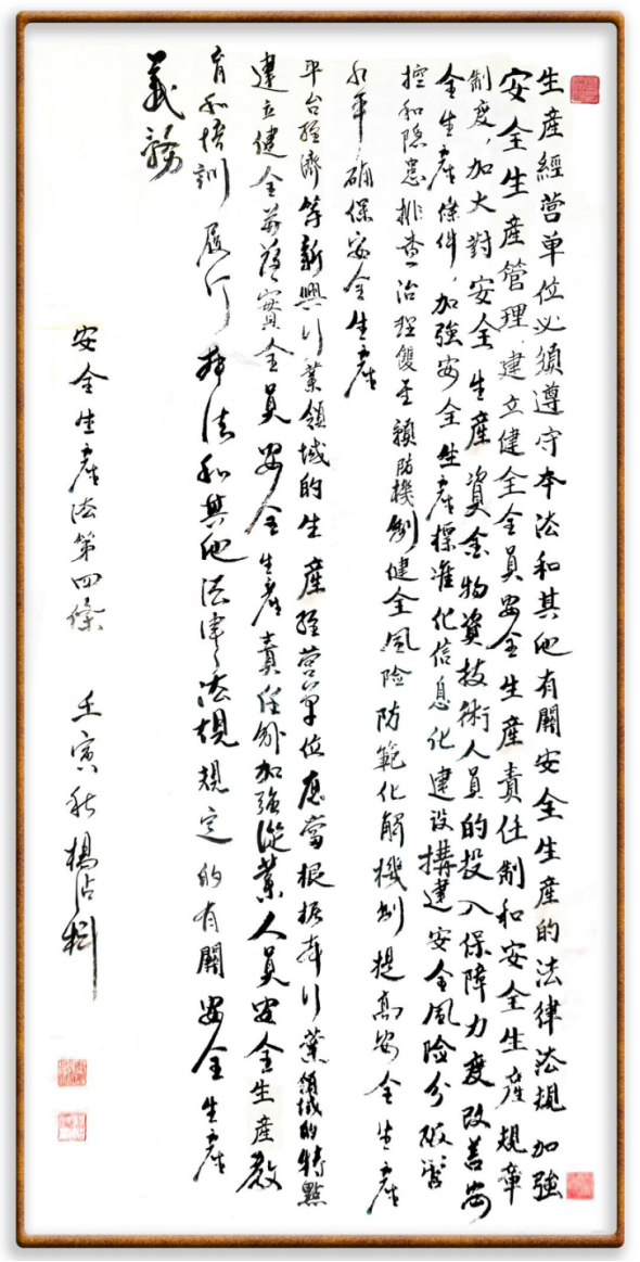 書(shū)·法|楊占科:安全生產(chǎn)法第四條