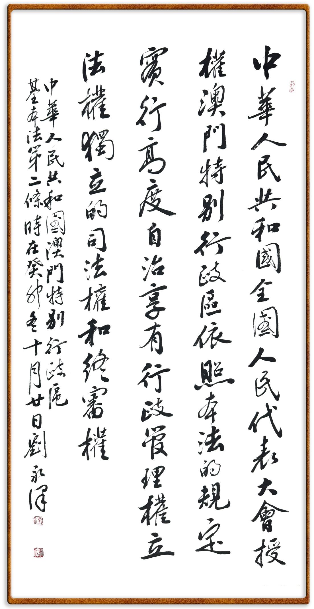 書(shū)·法|劉永澤:澳門(mén)基本法第二條