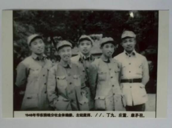 莊重同志(右二)與新華社華東前線分社幾位領(lǐng)導(dǎo)人,1948年攝于開封戰(zhàn)役前線。