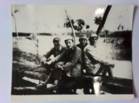 1947年秋人民解放軍大反攻,新華社華東前線分社記者(莊重同志位于右一)隨大軍渡過黃河南下中原時攝于黃河岸上。