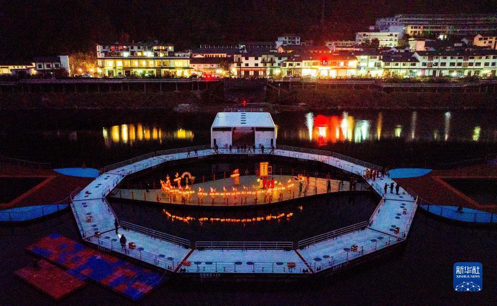 當(dāng)日,浙江省杭州市淳安縣里商鄉(xiāng)舉行2023元宵節(jié)花燈巡游,為當(dāng)?shù)厣洁l(xiāng)增添了熱鬧的元宵氛圍。