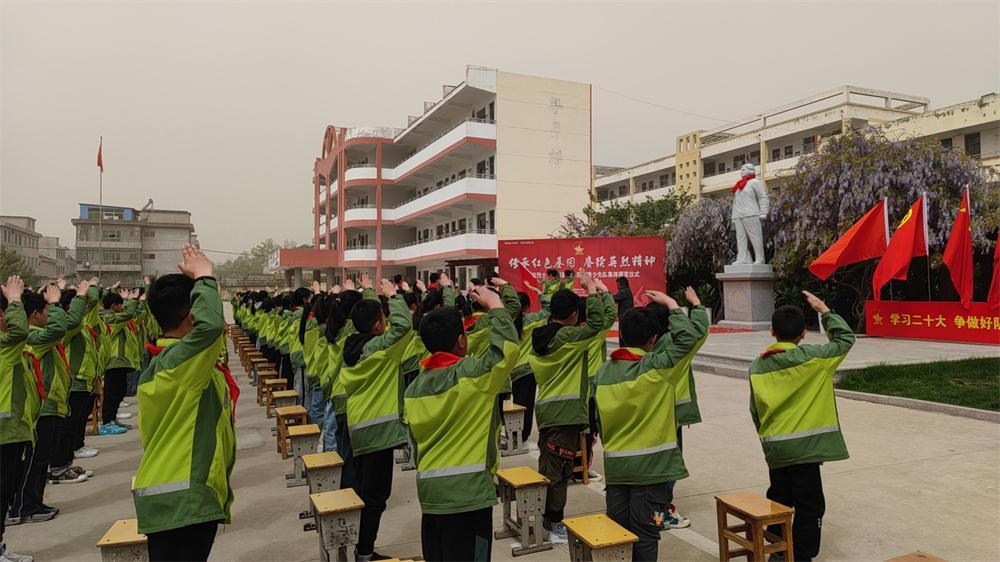 4月11上午10時(shí),晴空萬(wàn)里,艷陽(yáng)高照,在干凈一新的東??h白塔埠中心小學(xué)文化廣場(chǎng)上,一場(chǎng)以“傳承紅色基因 賡續(xù)英烈精神”為主題的活動(dòng)正在蓬勃而熱烈地開(kāi)展起來(lái),吸引300余名師生及附近干部群眾熱情參與。