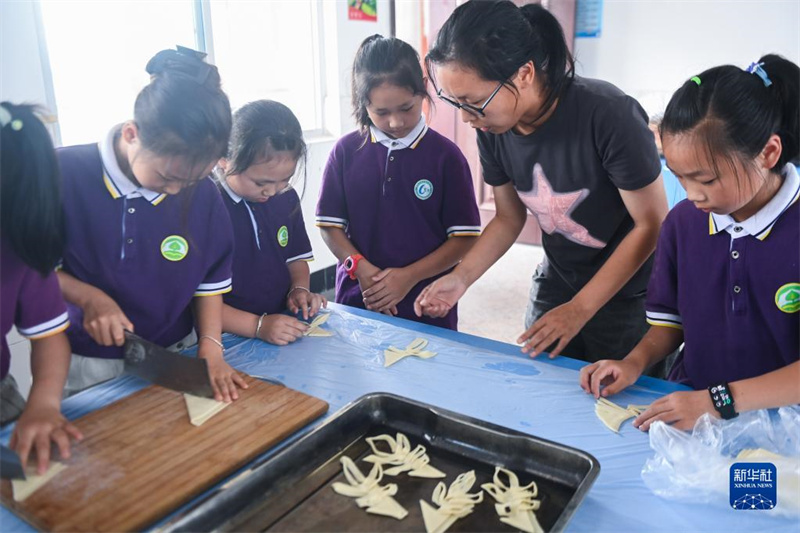 6月8日,學(xué)生們?cè)趥鹘y(tǒng)習(xí)俗課上學(xué)習(xí)做當(dāng)?shù)靥厣朗场溁ā?/span>