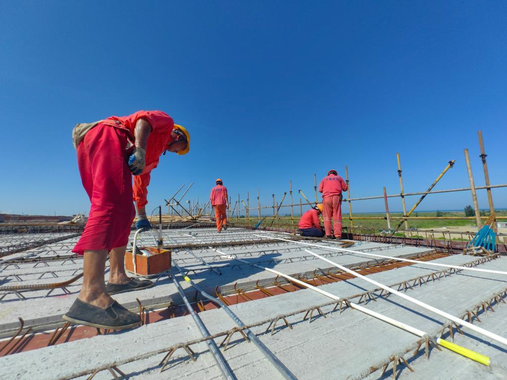 備戰(zhàn)全島封關(guān),相關(guān)硬件設(shè)施建設(shè)不能落后。在洋浦國際集裝箱碼頭附近,洋浦港封關(guān)運作項目建設(shè)現(xiàn)場一片繁忙,百余名工人頂著烈日或扎鋼筋,或拌水泥,或裝樓板,個個汗流浹背。“9月要完工,助力海南自貿(mào)港到今年底具備封關(guān)運作硬件條件。”項目負責(zé)人李東冬說。