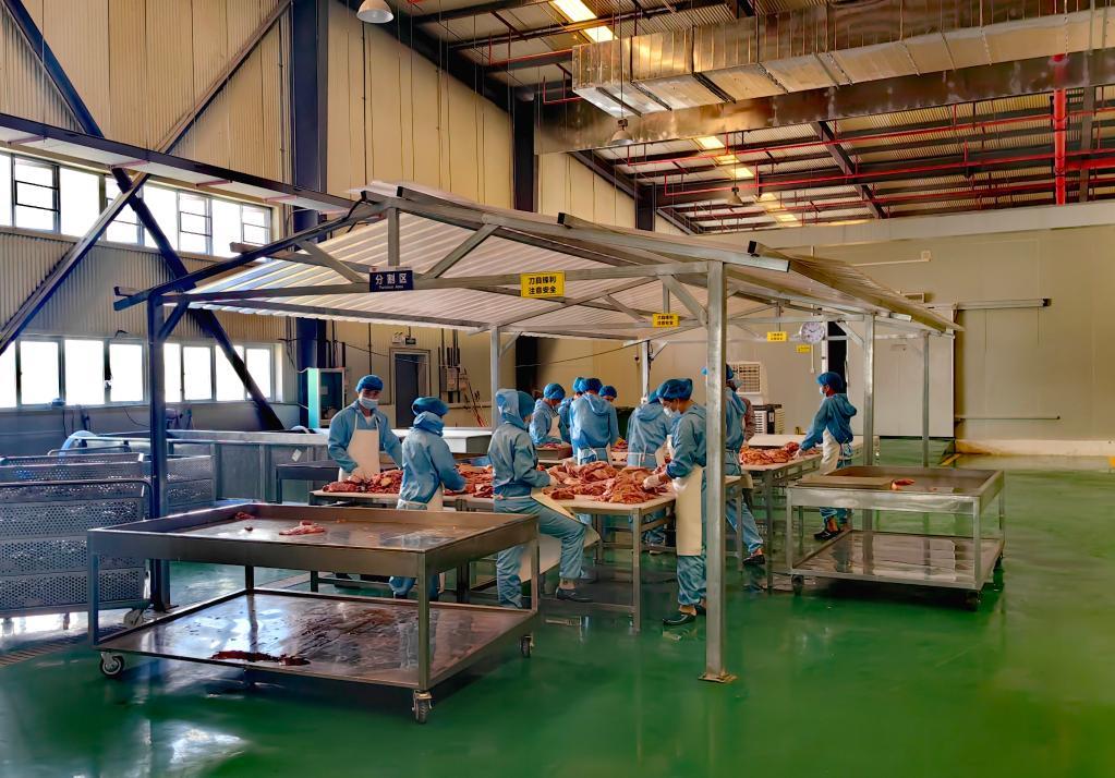 在海南紅焱食品有限公司廠房內(nèi),工人們正在學(xué)習(xí)牛肉分解。新華社記者吳茂輝 攝