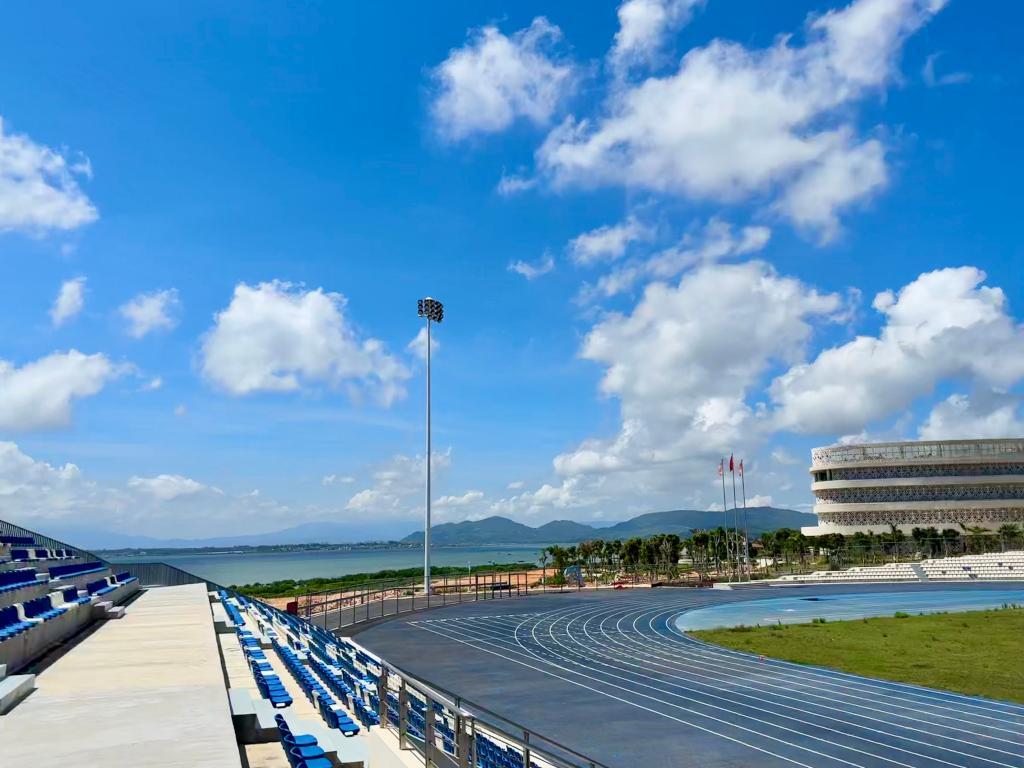 記者在陵水黎安半島看到,這是一座開(kāi)放式的“大校園”,教學(xué)樓、實(shí)驗(yàn)樓、圖書(shū)館、宿舍樓錯(cuò)落有致;運(yùn)動(dòng)場(chǎng)上,藍(lán)色的塑膠跑道、藍(lán)白相間的看臺(tái)座椅,與波光粼粼的新村潟湖交相輝映;試驗(yàn)區(qū)不遠(yuǎn)處,潔白的沙灘面朝南海,是師生們休憩時(shí)的最?lèi)?ài)。