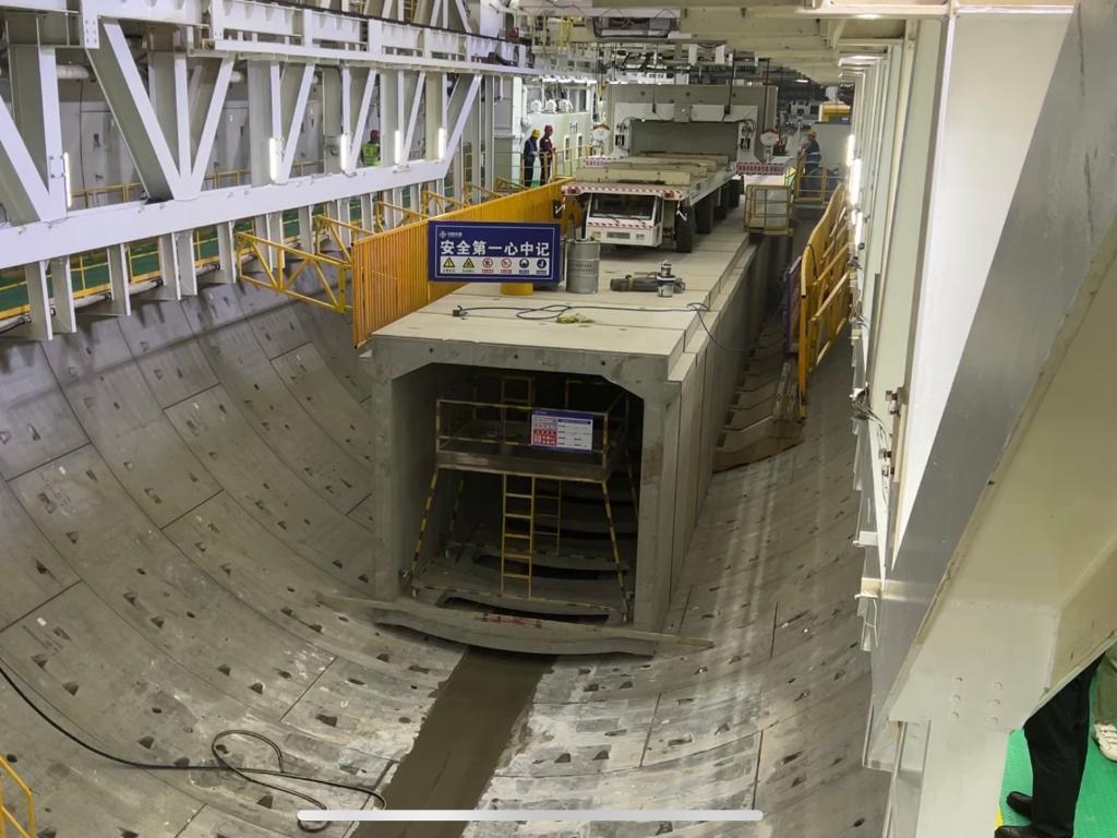 記者在挖掘現(xiàn)場(chǎng)看到,這里不見(jiàn)塵土飛揚(yáng),卻好似一組白色系的大型積木:隨著盾構(gòu)機(jī)向前推進(jìn),預(yù)制箱涵正在向前拼裝,形成隧道內(nèi)行車層的初期路面,圓弧形的盾構(gòu)管片也同步向前拼裝,組成隧道壁結(jié)構(gòu)。