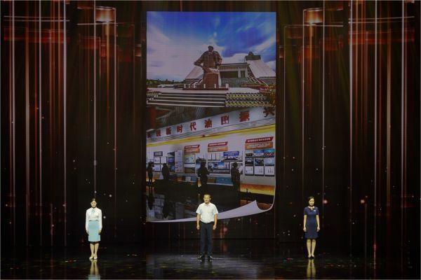 紅色紀(jì)念館講解員吳麗麗(左)、王立志(中)、程珺喆(右)在講述《我愛你中國》